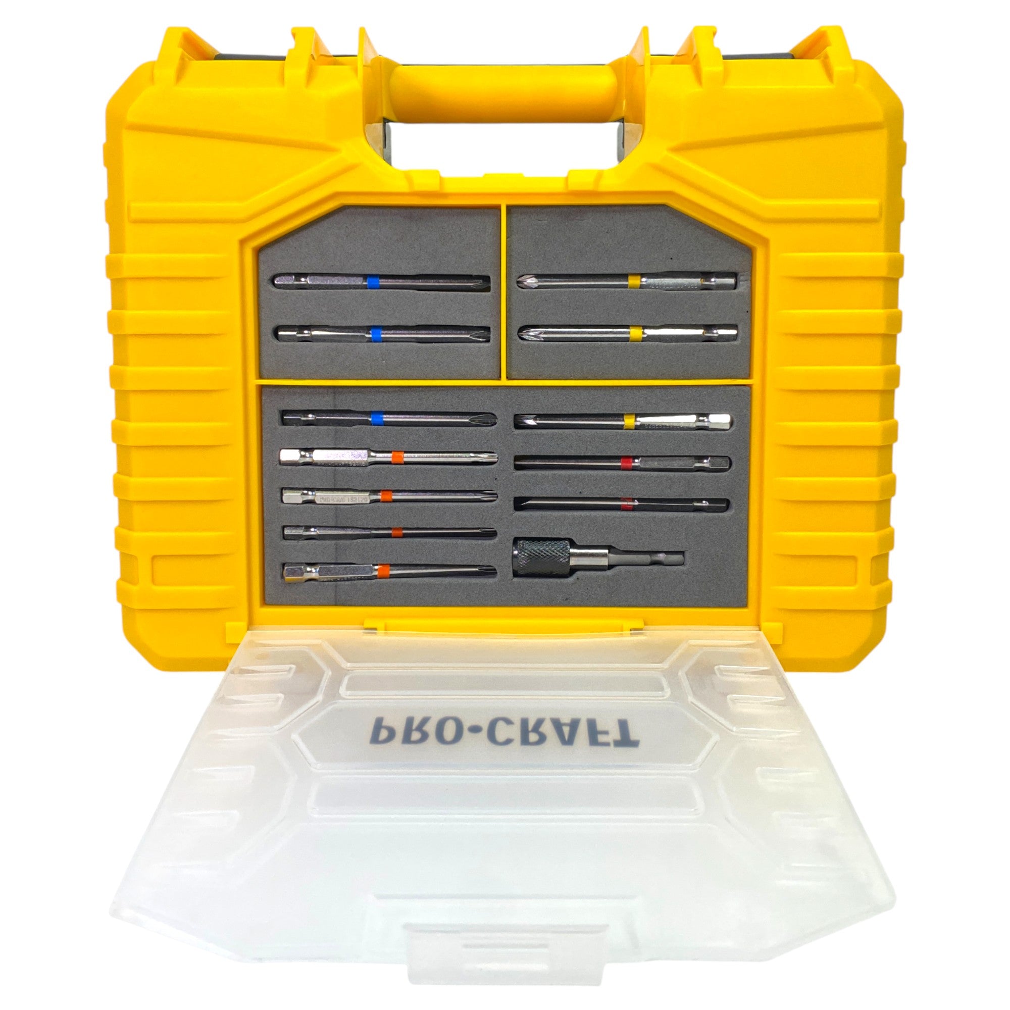 Der Procraft PA18ProDFR2 Akku Bohrschrauber überzeugt mit bürstenlosem Motor, 30 Nm Drehmoment, stufenloser Drehzahl und Schnellspannbohrfutter. Das Set beinhaltet Akku, Ladegerät und 13-teiliges Bit-Set im Koffer. Ideal für Heimwerker und Profis, die ein vielseitiges, leistungsstarkes und ergonomisches Werkzeug suchen.