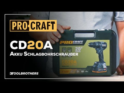- 1x akumulatorowa wiertarko-wkrętarka Procraft Industrial CD20A