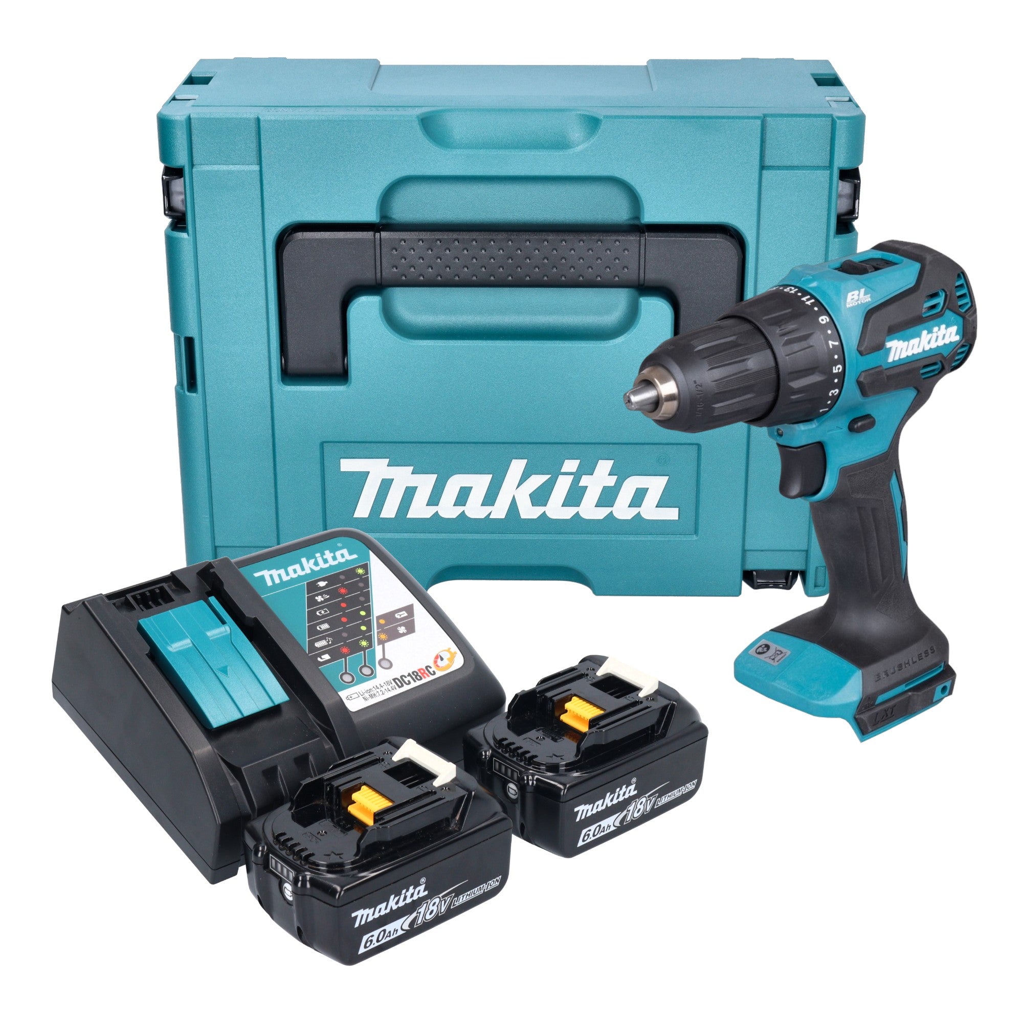 Akumulatorowa wiertarko-wkrętarka udarowa Makita DHP 490 RGJ 18 V 65 Nm bezszczotkowa + 2x akumulator 6,0 Ah + ładowarka + Makpac