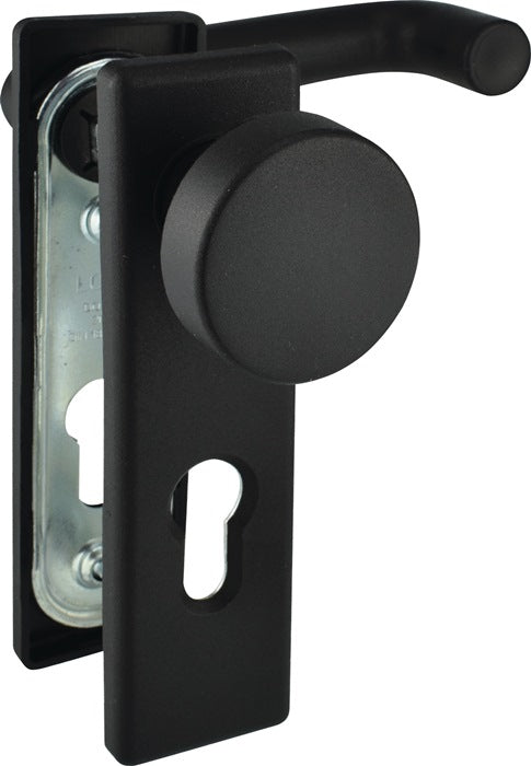 testowane zgodnie z DIN 18273 - z 2 śrubami mocującymi - perforacja PZ - rozstaw 72 mm - kwadrat 9 mm - klamka stała/obrotowa - płyty tylne ze stalowymi płytami podstawowymi i plastikowymi osłonami - pochylenie - do drzwi o grubości 40-66 mm - może być stosowany DIN lewy/prawy - kolor czarny