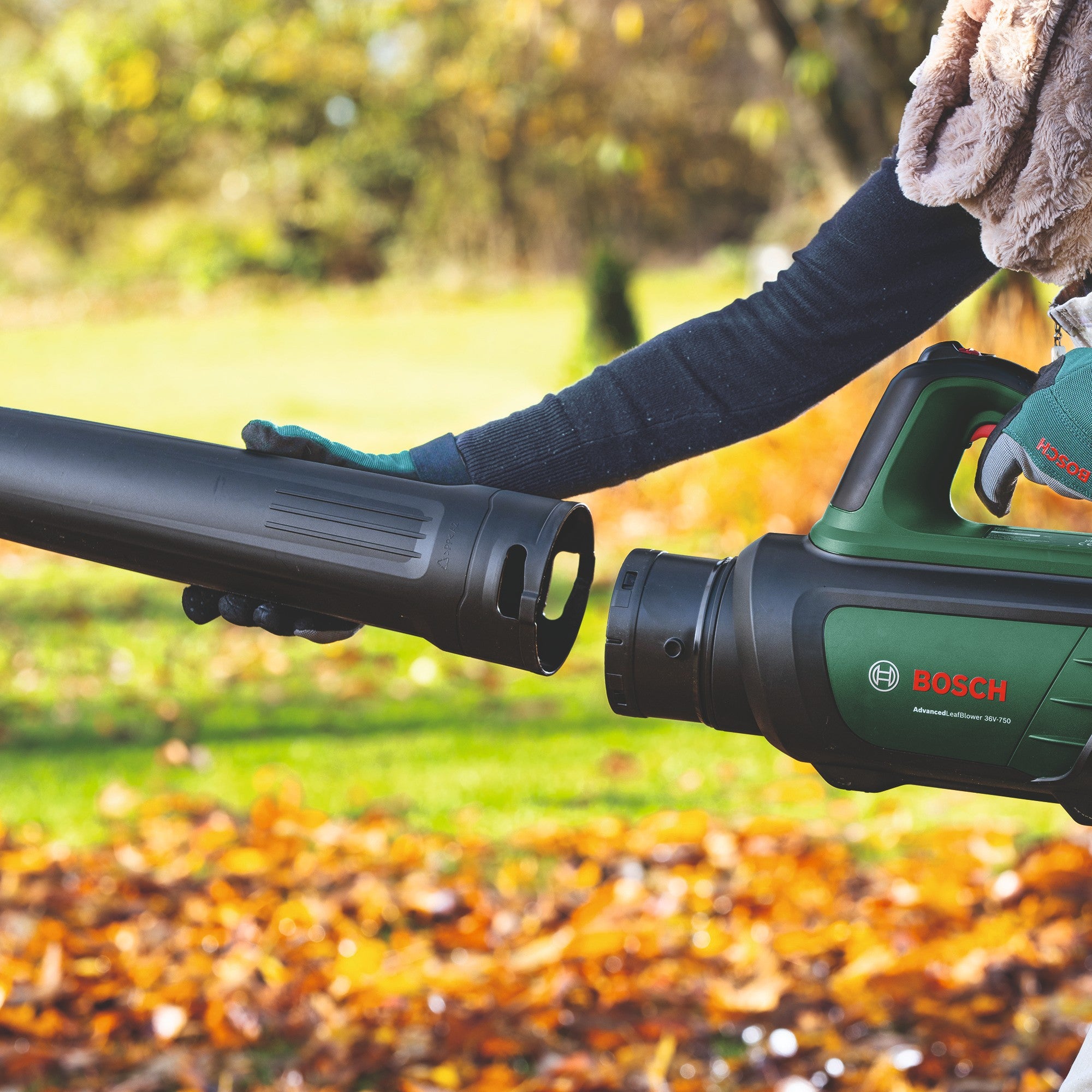 - 1x Akumulatorowa dmuchawa do liści Bosch AdvancedLeafBlower 36V-750