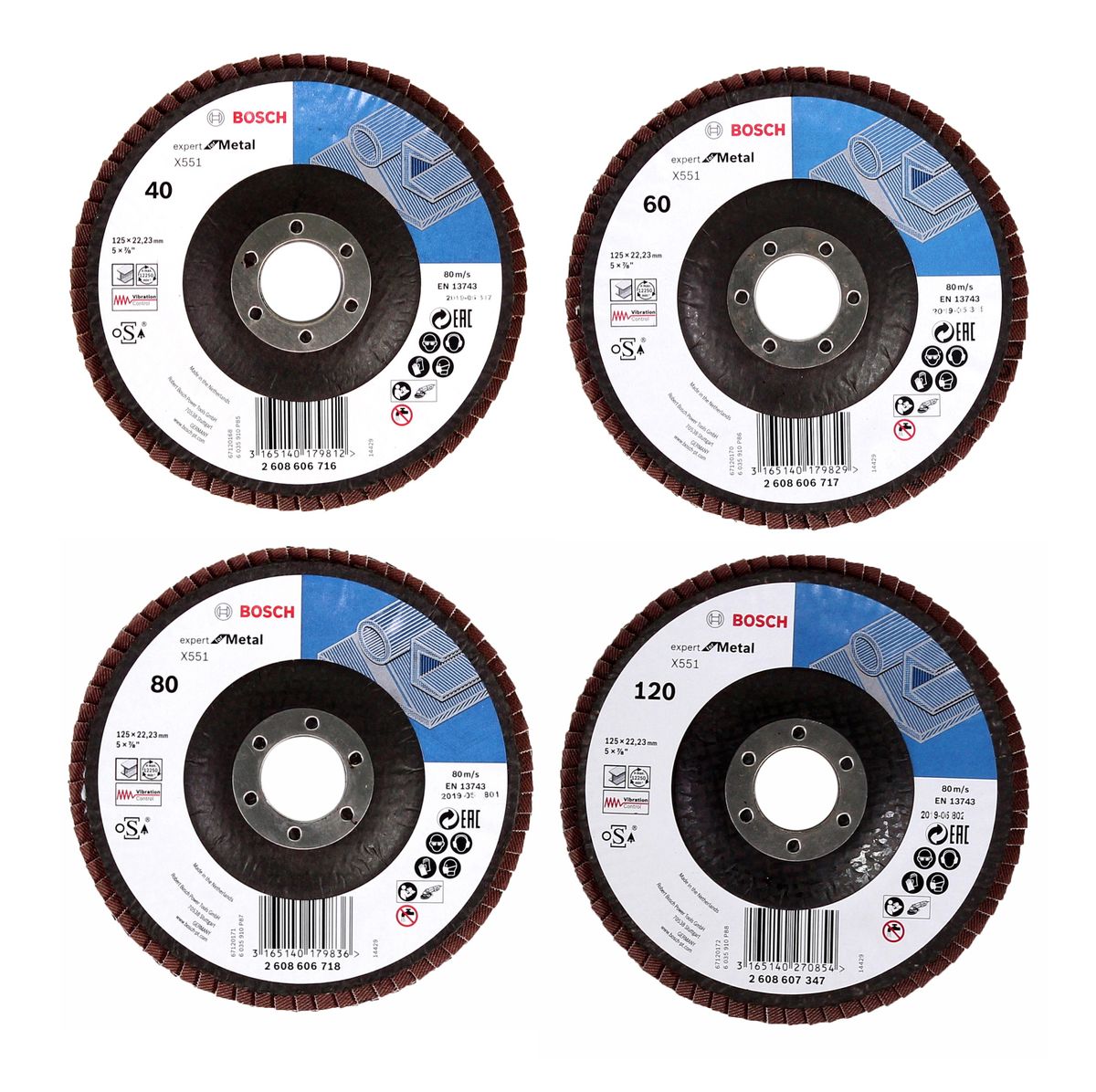 Bosch Fächerschleifscheiben Set X551 Expert for Metal 125mm, K40, K60, K80, K120 jeweils 10 Stück