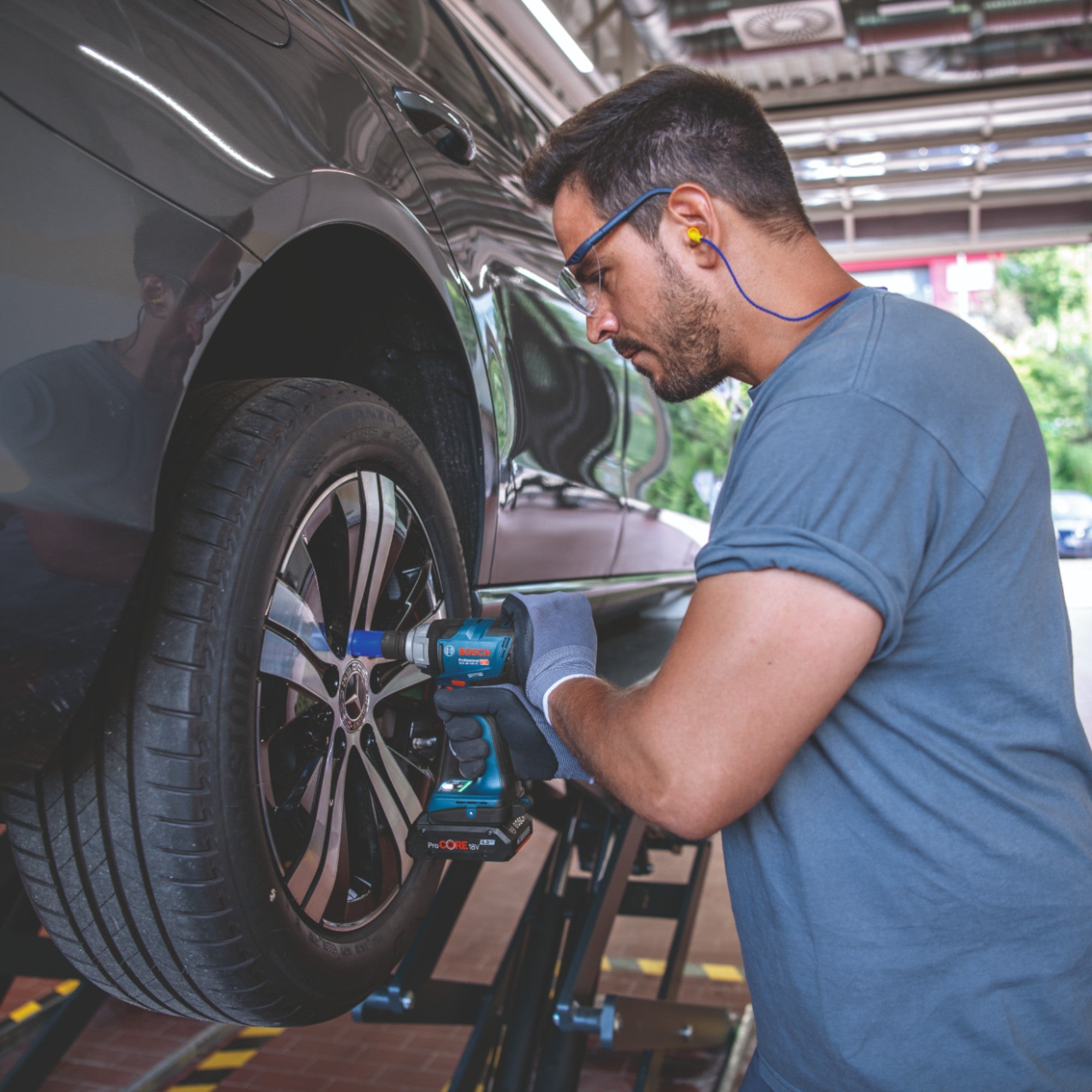 Akumulatorowy klucz udarowy Bosch GDS 18V-330 HC Professional to idealne rozwiązanie do wymagających zadań związanych z wkręcaniem w różnych obszarach, takich jak warsztaty metalowe, montaż przemysłowy, budowa ram i konserwacja pojazdów. Dzięki momentowi dokręcania 330 Nm i momentowi zrywającemu 560 Nm, ten kompaktowy i mocny klucz udarowy zapewnia maksymalną wydajność przy wkręcaniu metalowych śrub i nakrętek od M8 do M18. Dzięki trzem ustawieniom prędkości i momentu obrotowego można elastycznie dostosować moc do różnych materiałów i zastosowań, zapewniając większą kontrolę i precyzję podczas pracy. GDS 18V-330 HC oferuje dwa standardowe tryby wkręcania, które można dostosować za pomocą aplikacji Bosch Toolbox w celu optymalizacji zastosowania. Te tryby pracy, jeden dla wkrętów/nakrętek do metalu (A) i jeden dla wkrętów do drewna (B), zapobiegają nadmiernemu dokręcaniu wkrętów i łamaniu łbów wkrętów, automatycznie zmniejszając prędkość lub wyłączając narzędzie po osiągnięciu maksymalnej prędkości. Narzędzie jest kompatybilne ze wszystkimi akumulatorami i ładowarkami Bosch Professional 18V i jest częścią systemu Professional 18V. Jest również kompatybilne z AMPShare, sojuszem akumulatorów różnych marek. Praktyczne funkcje GDS 18V-330 HC obejmują wskaźnik stanu narzędzia, który przez cały czas pokazuje stan pracy, lampę LED zapewniającą lepsze oświetlenie obszaru roboczego oraz zaczep do paska zapewniający wygodny transport i łatwy dostęp.
