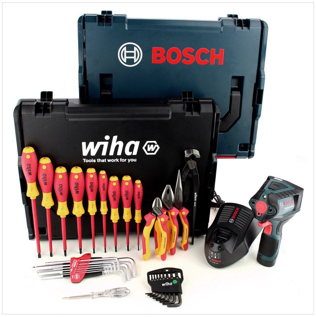 Das 31 teilige Elektriker Werkzeug Set von Wiha überzeugt durch sein Umfangreiches Sortiment und die geprüfte Robustheit und Qualität der einzelnen Werkzeugbestandteile. Die Schrauber wurden mit VDE- und GS-Geprüft ausgezeichnet und sind zudem bis 10000 V AC schutzisoliert. Die ergonomische Griffgestaltung erleichtert das Arbeiten und schont die Gelenke. Ein richtiges Drehmoment schützt vor Materialbeschädigungen und Nacharbeiten, zugleich benötigt man mit den Wha Zangen weniger Kraft, als mit vergleichbaren anderen.