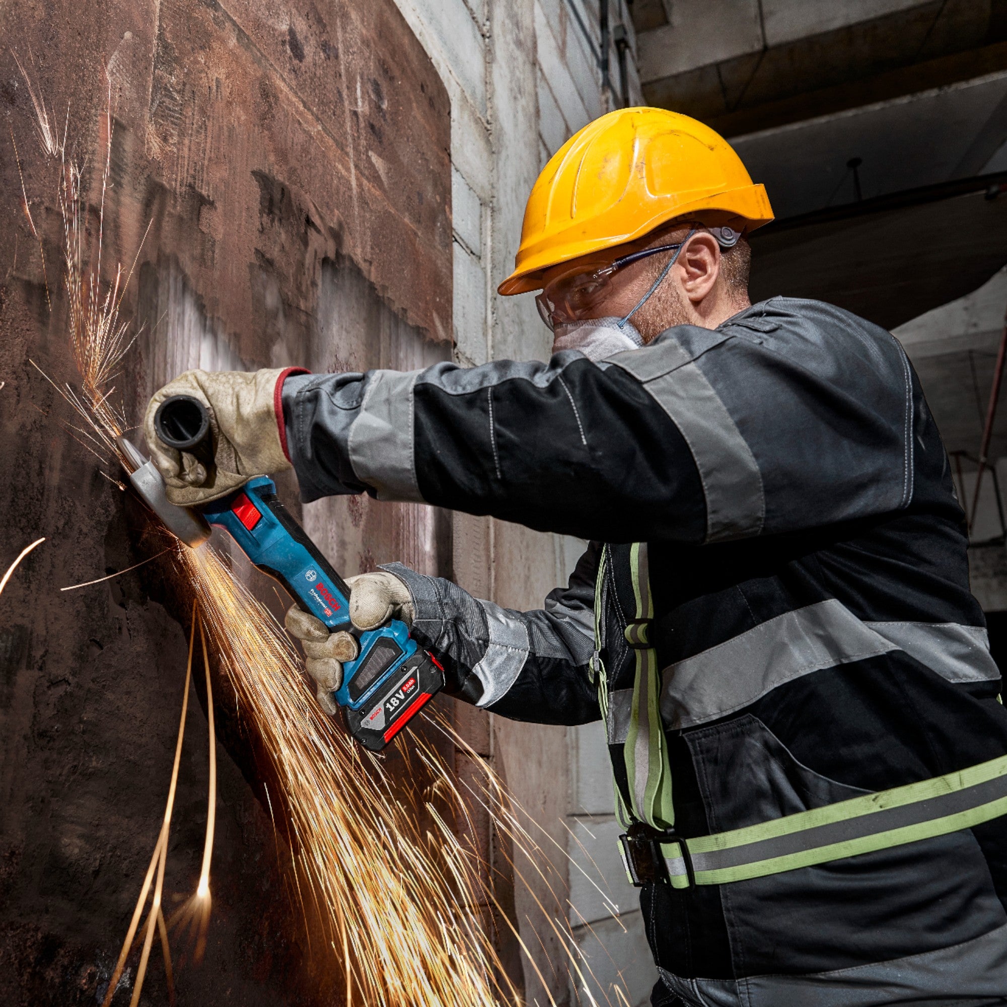 Akumulatorowa szlifierka kątowa Bosch GWS 18V-11 Professional to wszechstronne urządzenie o dobrze wyważonej konstrukcji, które nadaje się do szerokiego zakresu zastosowań. Dzięki mocy 1100 W narzędzia przewodowego i zoptymalizowanej przeciążalności imponuje wyjątkową trwałością - idealnie nadaje się do lekkich i średnio ciężkich prac związanych z cięciem i szlifowaniem, takich jak gratowanie, usuwanie rdzy lub naprawa rur. Antywibracyjny uchwyt w połączeniu z węższą i dłuższą rękojeścią zapewnia większy komfort, znacznie zmniejszając zmęczenie. Liczne zintegrowane funkcje bezpieczeństwa również minimalizują ryzyko obrażeń. Niezależnie od tego, czy chodzi o prace konserwacyjne, naprawcze czy instalacyjne na placu budowy - ta akumulatorowa szlifierka kątowa oferuje dużą wydajność, wysoką niezawodność i bezpieczną łatwość użytkowania.