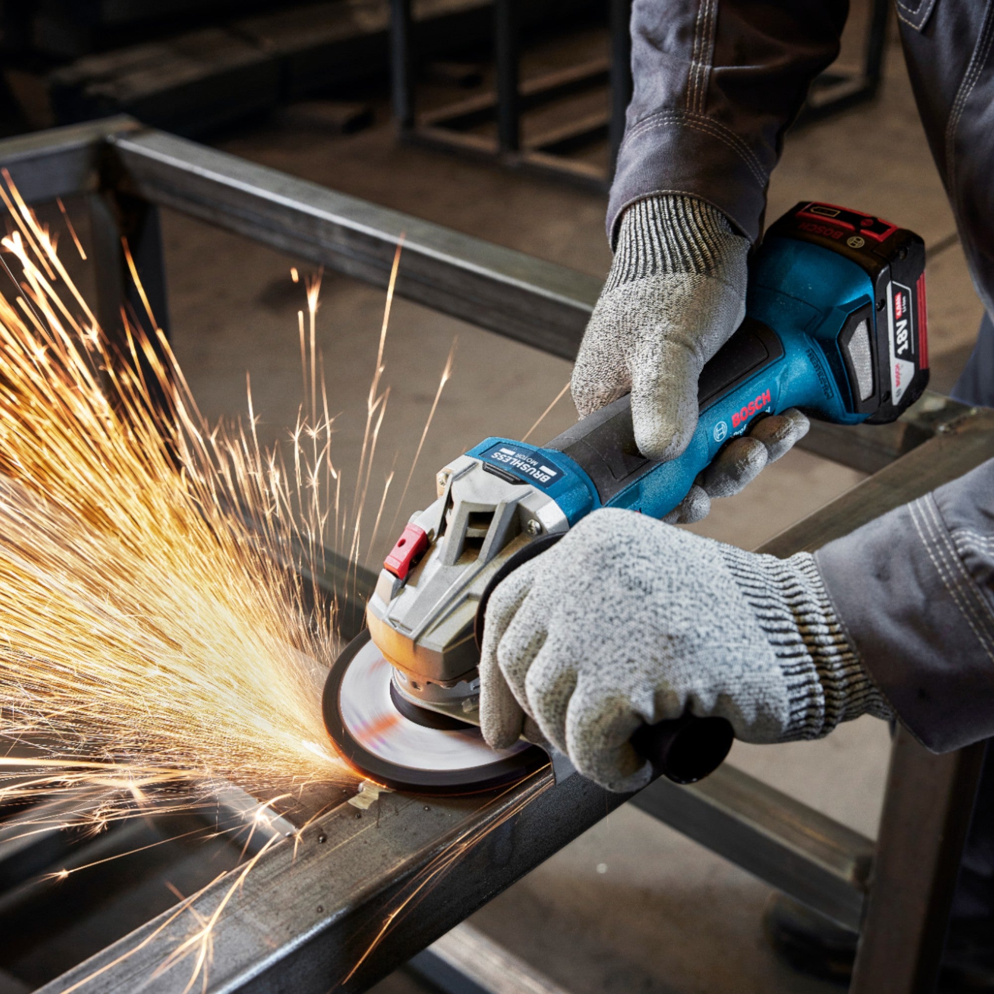 Akumulatorowa szlifierka kątowa Bosch GWS 18V-8 Professional łączy w sobie kompaktową konstrukcję z wysoką wydajnością, dzięki czemu idealnie nadaje się do lekkich prac związanych z cięciem i szlifowaniem - całkowicie bezprzewodowo. Dzięki mocy wyjściowej odpowiadającej 800-watowej jednostce sieciowej, szlifierka ta zapewnia najszybsze cięcie w swojej klasie - niezależnie od tego, czy chodzi o cięcie prętów zbrojeniowych, blachy, PVC lub płytek, czy też gratowanie lekkich elementów metalowych. Zoptymalizowane dostrojenie silnika i akumulatora zapewnia dłuższy czas pracy na jednym ładowaniu akumulatora, umożliwiając wydajniejszą pracę i rzadsze ładowanie. Nowo opracowany, ergonomicznie smukły uchwyt umożliwia wyjątkowo wygodną i bezpieczną obsługę, zmniejsza zmęczenie i zapewnia doskonałą kontrolę nawet podczas dłuższych prac. Ponadto kompatybilność z odsysaniem pyłu za pomocą metalowego kołnierza w połączeniu z odkurzaczami Bosch zapewnia czyste i zdrowe środowisko pracy.