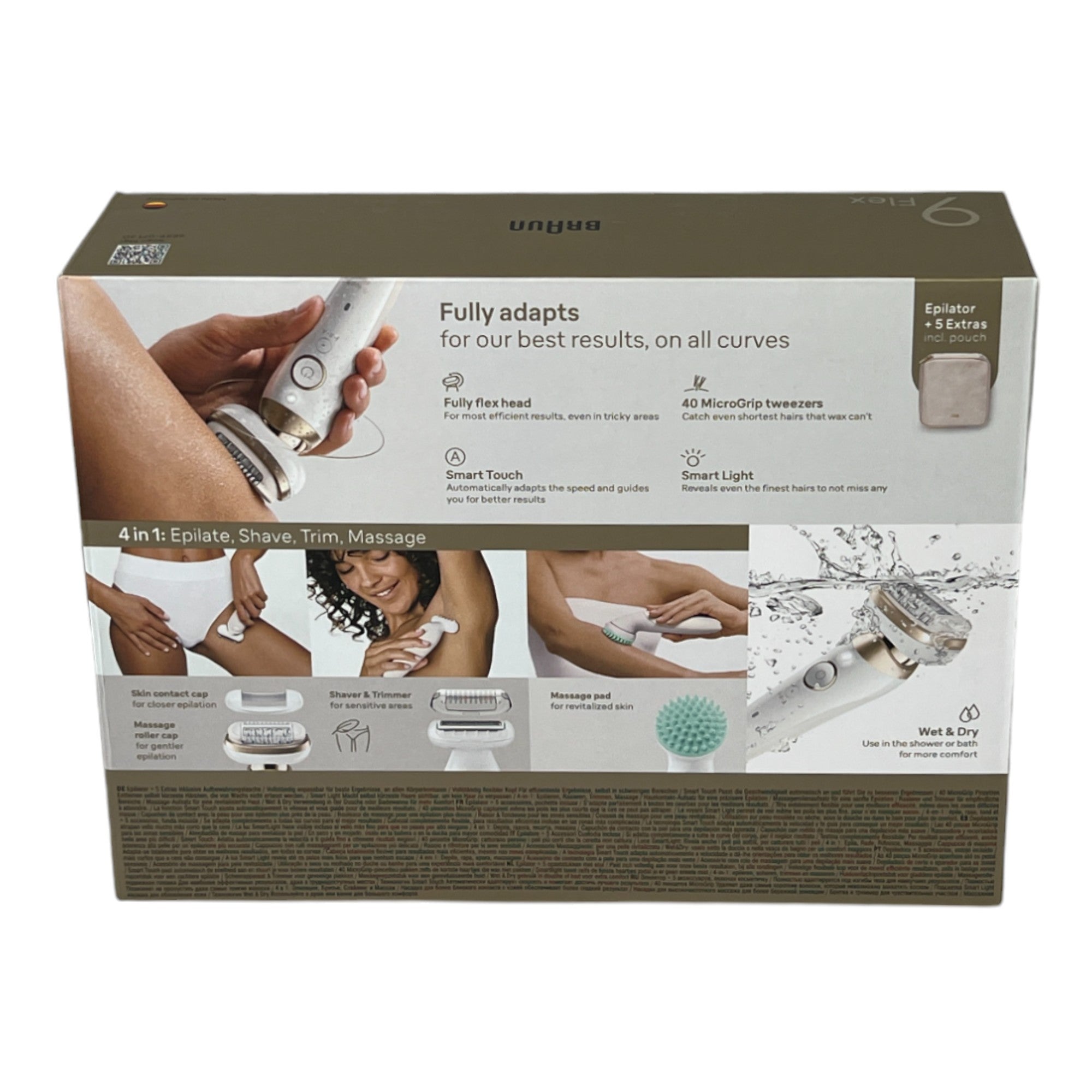 BRAUN Silk Epil 9-071 3D Flex Epilierer Damen Haarentferner für langanhaltende Haarentfernung + Rasieraufsatz + Massageaufsatz Weiß / Gold
