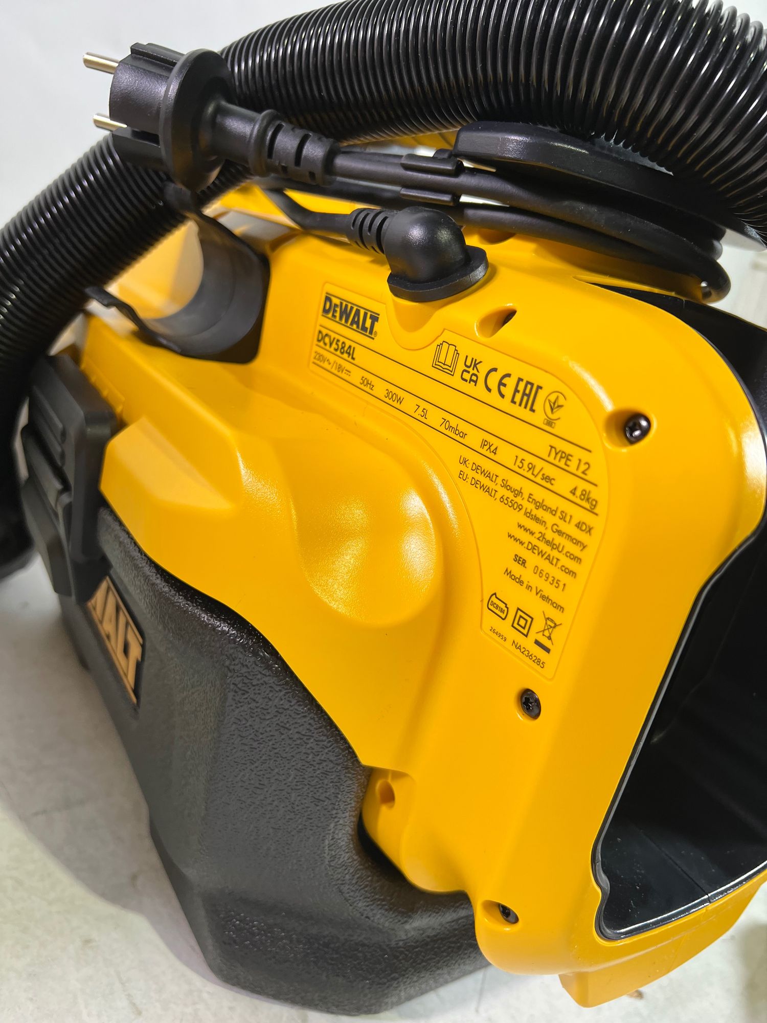 Der DeWalt DCV 584 L Staubsauger ist enorm mobil einsetzbar, da er sowohl über einen 230 V Netzanschluss, über DeWalt XR Akkus von 14,4 - 18 V, als auch über die neuen FlexVolt Akkus mit 54 V mit Strom versorgt werden kann. Da er als Trocken- und als Nasssauger eingesetzt werden kann und über eine Blas- und Saugvorrichtung verfügt, hat der DCV 584 ein breites Einsatzgebiet auf dem er flexibel genutzt werden kann. Der starke Hepa-Hochleistungsfilter ist auswaschbar und fängt 99,7% aller Staubpartikel ab einer Größe von 0,3 Mikrometern ab. Dank leichter und trotzdem robuster Bauweise und einem zwei Meter langen knick- und trittfestem Schlauch ist eine praktische Verwendung bei langer Nutzungsdauer gewährleistet. Es handelt sich um einen zertifizierten L-Klasse-Sauger, der zur Beseitigung von Weichholzstäuben geeignet ist.