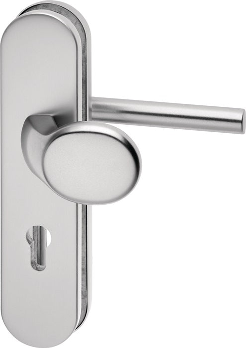 Grundkonstruktion: Druckguss mit 2 mm Teilstahleinlage im Außenschild, oberflächengehärtet · Stärke Innenschild = 8 mm · Drücker-Lagerung: lose · Drückertyp und -stärke: 108 mit Ø 22 mm · Knopfausführung bei Wechselgarnitur: Modell …/0272 und …/0292 = K2 (gekröpft), bzw. Modell …/0772 und …/0792 = K7 (gerade) · Stütznocken: M6, Ø 10 mm anbohrgeschützt · Verschraubung: 3-fach M6, verdeckt · Anbohrschutz beim Außenschild · Wechselgarnituren mit Spezialrollenwechselstift mit M12-Gewinde · DIN links / rechts · ohne Zylinderabdeckung · Widerstandsklasse ES1