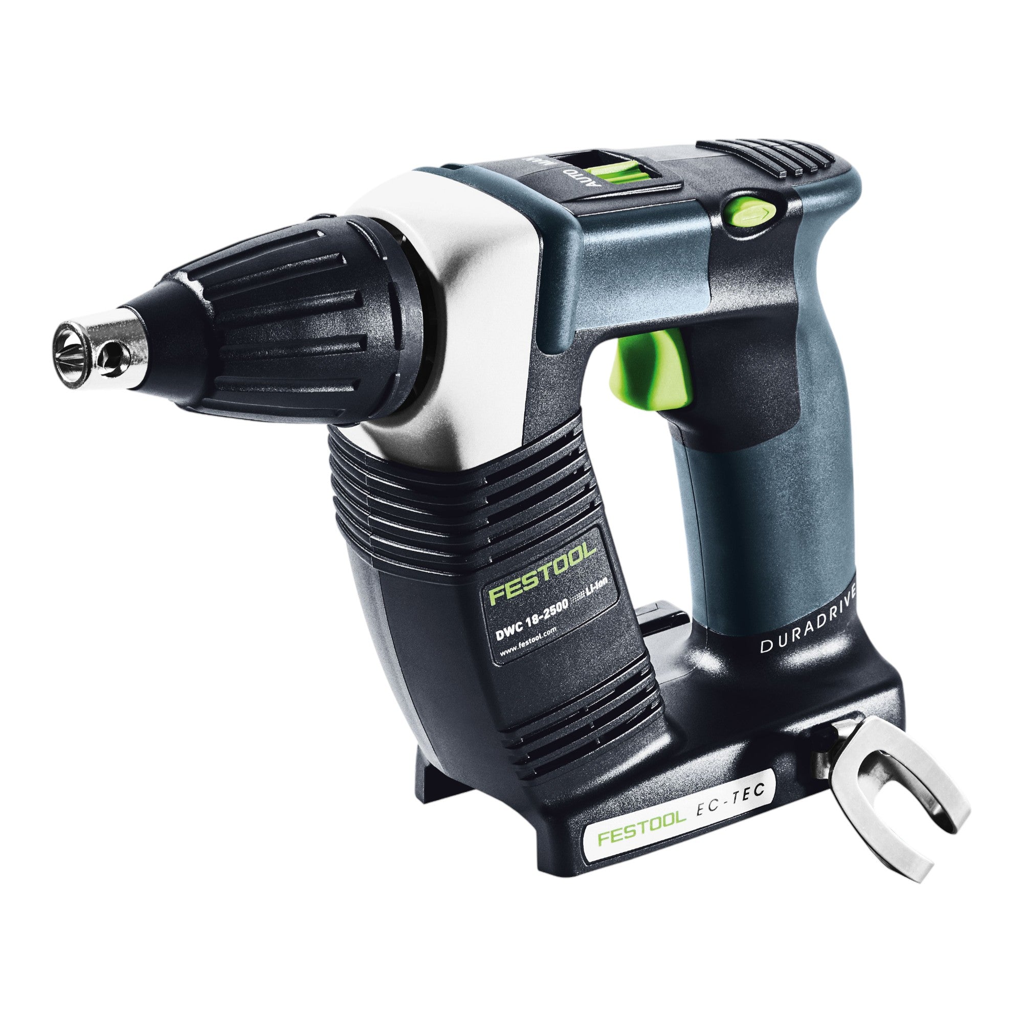 Akumulatorowa wkrętarka budowlana Festool DWC 18-2500 Basic z magazynkiem jest szczególnie przydatna do wkręcania w suchej zabudowie. Dzięki optymalnemu momentowi obrotowemu możliwe jest wykonywanie nawet wymagających połączeń śrubowych o średnicy do 5 mm, niezależnie od tego, czy podłoże jest wykonane z metalu czy drewna. Akumulatorowa wkrętarka budowlana jest napędzana bezszczotkowym silnikiem EC-TEC, który charakteryzuje się długą żywotnością i bardzo wysoką wydajnością. Elektroniczny wyłącznik jest nie tylko wyjątkowo precyzyjny, umożliwiając dokładne ustawienie głębokości wkręcania, ale także nie ulega zużyciu, dzięki czemu jest bardzo trwały. W razie potrzeby magazynek DWC 18-2500 można wyjąć w zaledwie kilka sekund bez użycia narzędzia, co oznacza, że akumulatorowa wkrętarka budowlana jest gotowa do każdego zadania w zaledwie kilka sekund.