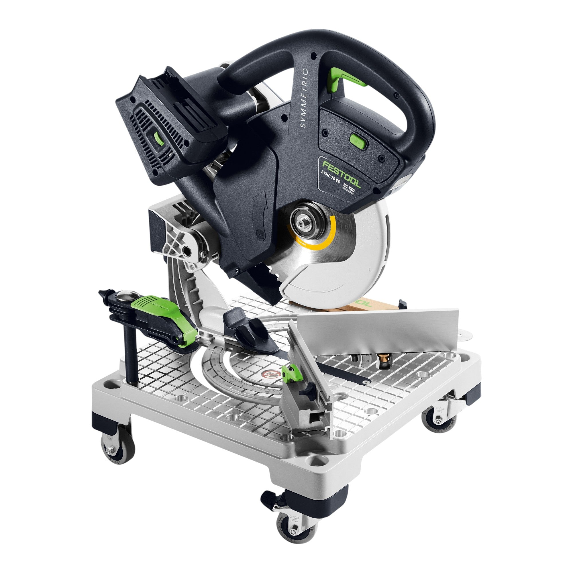 Za pomocą akumulatorowej pilarki do listew Festool SYMC 70 EB SYMMETRIC można ciąć listwy dwa razy szybciej niż za pomocą konwencjonalnej pilarki do cięcia poprzecznego, bez konieczności wykonywania obliczeń. Dzięki ściętej krawędzi można łatwo przenosić kąty wewnętrzne i zewnętrzne na symetryczny system przykładnic. Umożliwia to cięcie pod kątem o połowę mniejszym i precyzyjne przycinanie obu listew narożnych za pomocą jednego ustawienia. Rolki na pilarce do listew zapewniają szybkie i łatwe ustawienie pilarki we właściwej pozycji. W połączeniu z systemem dwóch akumulatorów zapewnia to mobilność i elastyczność w każdym środowisku pracy. Żaden kabel nie zakłóca procesu pracy, dzięki czemu można optymalnie pracować również w małych przestrzeniach. Pilarka posiada również wiele sprytnych detali, które ułatwiają pracę. Obejmują one przyjazną dla użytkownika koncepcję przełącznika i światło uderzeniowe LED wskazujące linię cięcia, dzięki czemu zawsze masz idealny przepływ pracy. Pilarka jest również wyposażona w worek na pył, który zapewnia pracę przy niskim zapyleniu, nawet bez odkurzacza mobilnego. Akumulatorowa pilarka formatowa Festool SYMC 70 EB SYMMETRIC jest wygodna w obsłudze zarówno dla osób prawo-, jak i leworęcznych, ponieważ włącznik i uchwyt są umieszczone pośrodku. Wysokiej jakości brzeszczoty są precyzyjnie dopasowane do piły i materiału, dzięki czemu zawsze uzyskuje się doskonałe wyniki cięcia. Za pomocą tej piły do listew przypodłogowych można przeciąć listwy na pół bez konieczności wykonywania obliczeń. Można jej także używać do cięcia szkła, listew maskujących i wykończeniowych, a także profili pod dokładnym kątem. Tępe i ostre kąty wewnętrzne i zewnętrzne można ciąć szybko i łatwo.