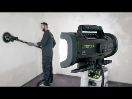 Reflektor budowlany SYSLITE DUO Festool przekonuje unikalnym układem diod LED zapewniającym kąt rozproszenia 180° i równomierne oświetlenie. Wysoka jasność 8000 lumenów zapewnia doskonałe oświetlenie na dużej powierzchni przy barwie światła 5000 K zbliżonej do światła dziennego. Reflektor budowlany Festool jest solidny i trwały, a jego żywotność wynosi do 10 000 godzin. Syslite DUO jest odporny na kurz, wodę, upadki i uderzenia. Wszystkie powierzchnie styku nagrzewają się do maksymalnie 90 °C, a kabel o długości 4,8 m zapewnia duży zasięg działania, co przekłada się na doskonałą obsługę podczas pracy. Reflektor budowlany można zamontować pionowo na podłodze lub na powierzchni, na statywie Festool lub na hakach z opcją zawieszenia z tyłu. Festool to wiodący producent elektronarzędzi, charakteryzujący się wieloletnią tradycją i wysoką jakością produktów.