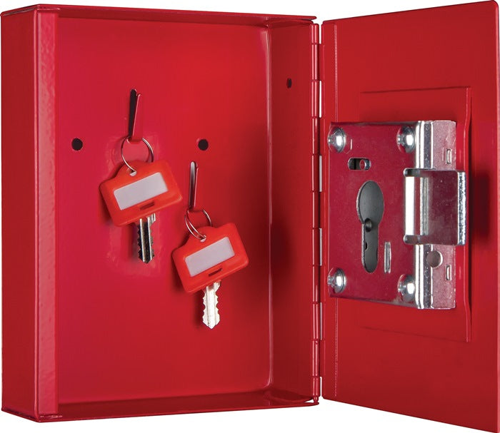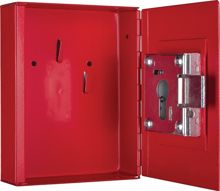 vorgerichtet für Profilhalbzylinder (PHZ) · mit Vollmetalltür · karminrot (RAL 3002) · zur Aufbewahrung von 2 Schlüsseln · Vorrichtung für Rückwandverankerung inkl. Verankerungsmaterial