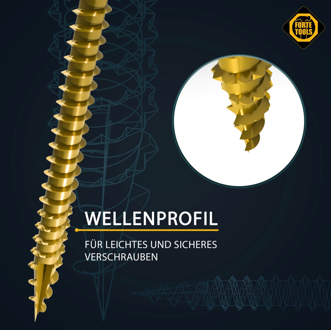 Die FORTE Tools Holzschraube mit Torx Aufnahme garantiert dem Anwender eine hohe Flexibilität durch universelle Einsetzbarkeit in Holz. Der Senkkopf sorgt für eine saubere und bündige Versenkung der Schraube in Holz. Die Torx Aufnahme erlaubt eine bessere Kraftübertragung auf die Schraube, höhere Standzeiten sowie ein schnelleres Einfädeln der Schraube mit zugleich besserem Passsitz am Werkstück. Der Reibeteil ermöglicht ein effizienteres einschrauben. Zusätzlich sorgt das Wellenprofil am vorderen Gewinde für ein leichtes und sicheres Verschrauben. Die Verzinkung sorgt für einen Korrosionsschutz und eine deutlich höhere Oberflächenhärte als herkömmliche blanke Schrauben, wodurch sich die Einsatzmöglichkeiten um ein vielfaches im Außenbereich erweitern lassen.