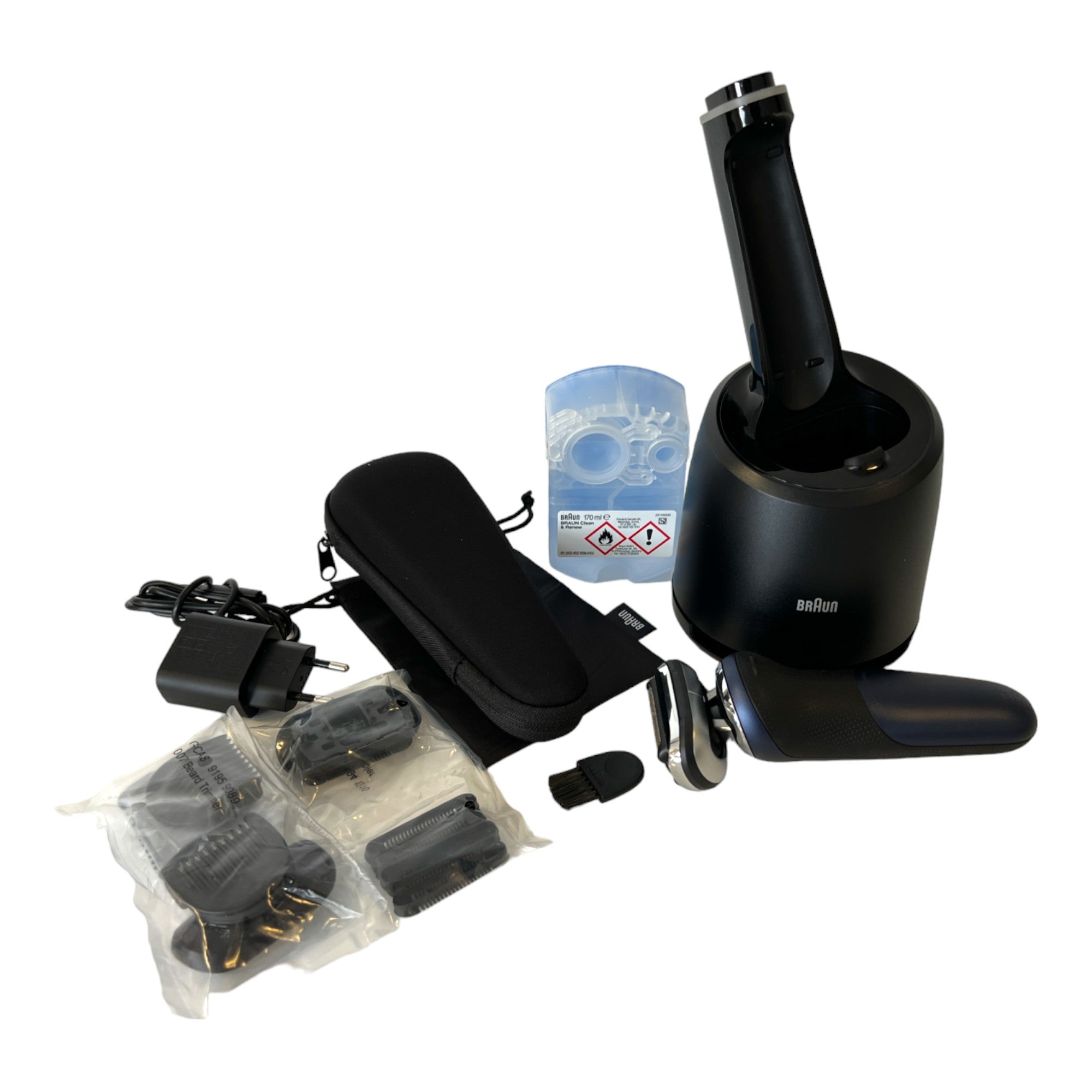 Z golarką elektryczną Braun Series 7 dla mężczyzn doświadczysz dokładnego i przyjaznego dla skóry golenia jak nigdy dotąd. Dzięki innowacyjnej regulacji 360° głowica goląca dostosowuje się do każdego konturu twarzy i dociera nawet do trudno dostępnych miejsc. Technologia AutoSense rozpoznaje gęstość zarostu i automatycznie dostosowuje moc silnika, aby usunąć jeszcze więcej włosów przy każdym goleniu. Wydajny akumulator litowo-jonowy zapewnia czas pracy do 3 tygodni (50 minut) i jest w pełni naładowany w ciągu 5 minut - idealny do szybkiego użycia rano. Niezależnie od tego, czy golisz się na mokro, czy na sucho, golarka jest w 100% wodoodporna, dzięki czemu można jej używać pod prysznicem lub z pianką i żelem. Dzięki systemowi EasyClick golarka jest jeszcze bardziej wszechstronna i można ją rozbudować o różne nasadki zapewniające dodatkowe funkcje. Zakres dostawy obejmuje również praktyczną stację czyszczącą oraz nasadki do precyzyjnego przycinania brody i 3-dniowego zarostu.