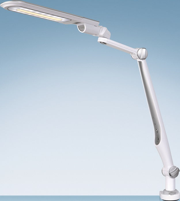 ABS/Żelazo/PS ∙ Z podstawą i zaciskiem stołowym ∙ Wszechstronna głowica oprawy ∙ Możliwość płynnego ściemniania ∙ Wysięg maks. 660 mm - wysokość maks. 600 mm ∙ Napięcie robocze 100-240 V ∙ Barwa światła 3 100 Kelwinów - ciepła biel, 4 400 Kelwinów - neutralna biel, 6.100 kelwinów - biel dzienna ∙ Strumień świetlny 550 lumenów ∙ Żywotność 20 000 godzin ∙ Ważone zużycie energii 9 kWh/1000h ∙ Klasa efektywności E (widmo od A do G) ∙ Oprawa zawiera wbudowane lampy LED ∙ Lampy nie mogą być wymieniane Zakres dostawy: Stojak i zacisk