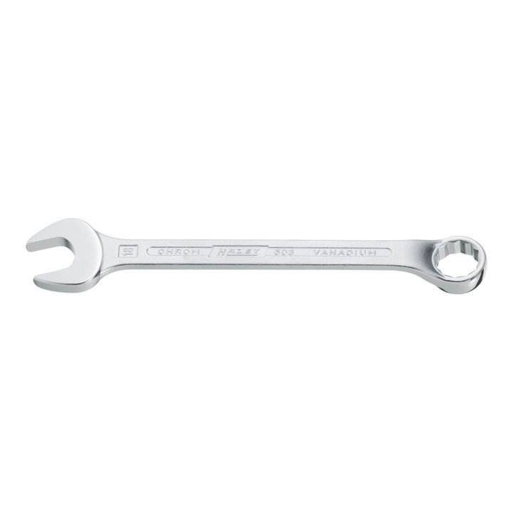 CV-Stahl · verchromt · mit gleichen Schlüsselweiten · Ringseite 10° gekröpft, Maulstellung 15° · Schlüsselweite 5,5 bis 9 mm Ringseite mit Sechskant, ab Schlüsselweite 10 mm Ringseite mit Doppelsechskant DIN 3113 Form B / ISO 3318 / ISO 7738