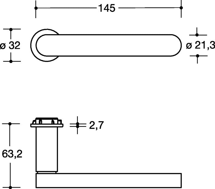 Zimmergarnitur mit Schlüsselrosetten · mit flacher Drückerrosette, Abdeck-Kappe aus Edelstahl, Türdrücker Modell 271XAM in L-Form aus Edelstahl (1.4301), Vierkantstift 8 mm, für Österreich 8,5 mm, mit Trapezgewinde · Fixierung der Drücker in einem Einpresslager und einer Polyamid-Gleitlagerbuchse · mit Schlüsselrosette 306XAM, 32 x 47 mm · Montage der Einpressbuchsen mittels Montagemutter mit Trapezgewinde, SW 19, mit einem Ringschlüssel SW 19 · die Montage wird empfohlen an stumpfen wie auch gefälzten Wohnraum- und Innentüren mit HDF-Deckplatte und Mittellagen aus Röhrenspan- bzw. Vollspaneinlage oder hochwertiger