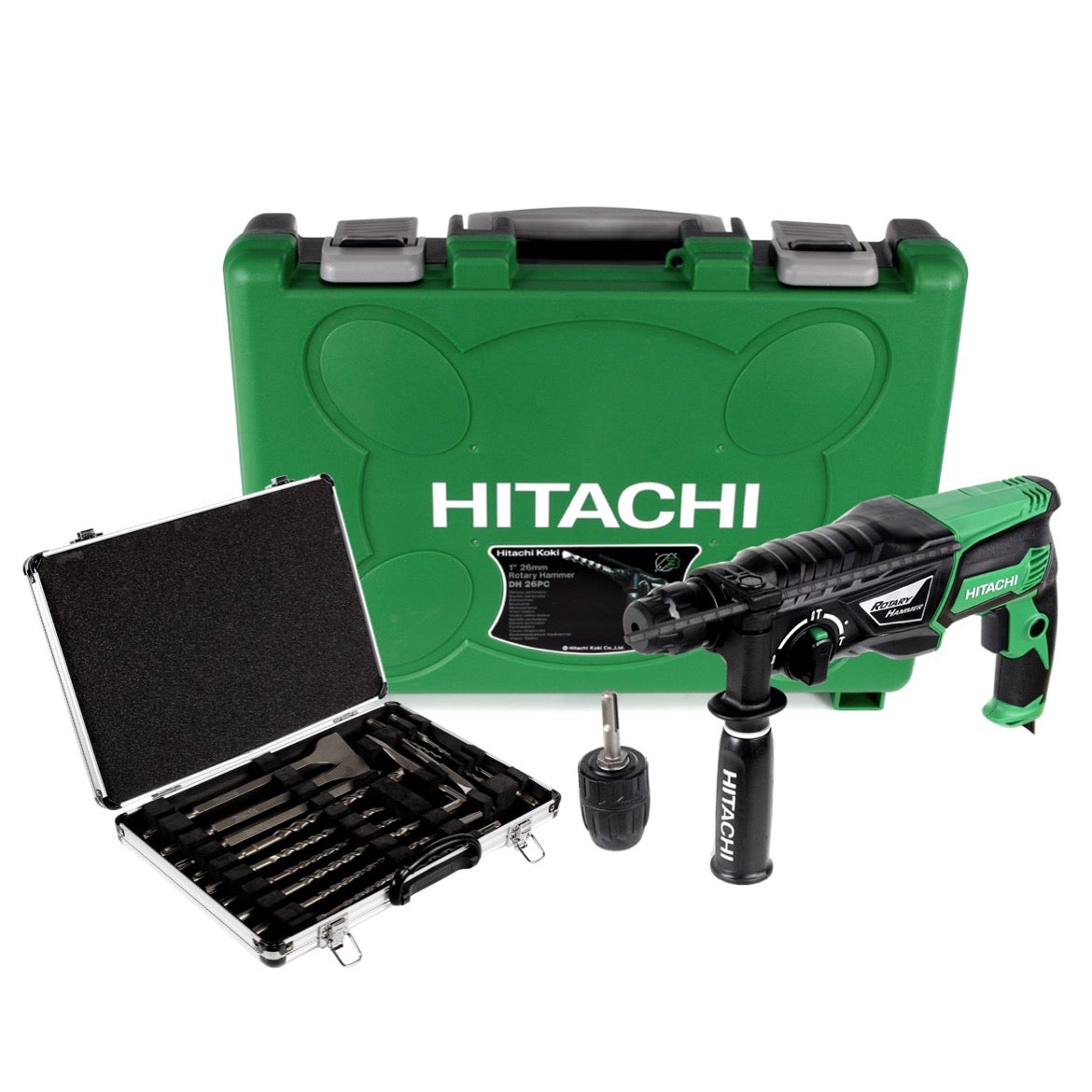 Hitachi DH 26 PC SDS Plus Bohrhammer Meißelhammer 830 W im Koffer + Makita D-42444 SDS-Plus Bohrer-Meißel-Set 17 tlg. im Alu Koffer