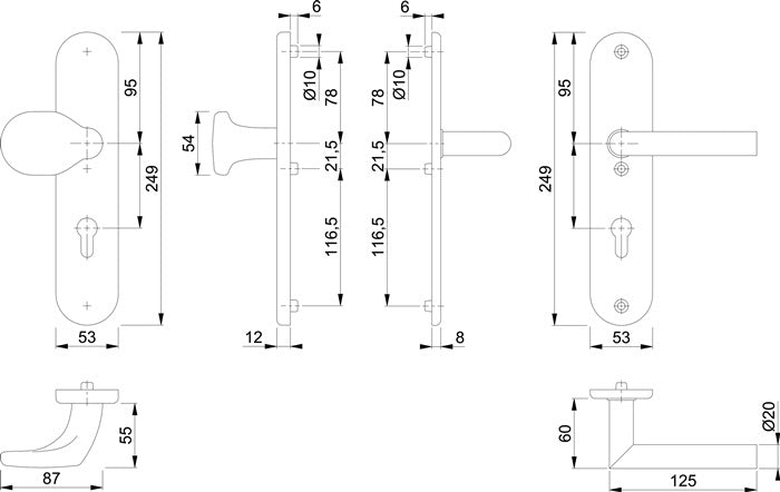 do drzwi końcowych - podkonstrukcja Zamak w płycie zewnętrznej i wewnętrznej - ze stałym pokrętłem - połączenie sworzniowe profilu FDW - widoczne mocowanie śrubowe - PZ - w tym materiał mocujący M6 - wysokość krawędzi płyty zewnętrznej 12 mm - odległość 72 mm - kwadrat 8 mm - DIN lewy / prawy - klasa odporności ES 0