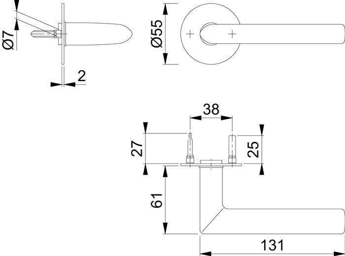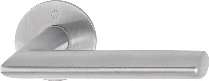 Zestaw klamek z płaską rozetą ze stali nierdzewnej Hoppe-SchnellstiftPlus bez rozet na klucz do drzwi wewnętrznych - z pełnym trzpieniem Hoppe (część z trzpieniem/otworem) - testowane zgodnie z DIN EN 1906:37-0140U (kategoria użytkowania 3) - łożysko: klamka luźna, bezobsługowe łożyska ślizgowe - zatrzaskowe rozety klamek ze stali nierdzewnej z ciągłymi krzywkami podpierającymi - do drzwi o grubości 35-45 mm - kwadrat 8 mm - długość klamki 131 mm - głębokość klamki 61 mm - DIN lewa / prawa - cecha szczególna: montaż bezśrubowy i beznarzędziowy, płaskie okrągłe rozety 2 mm