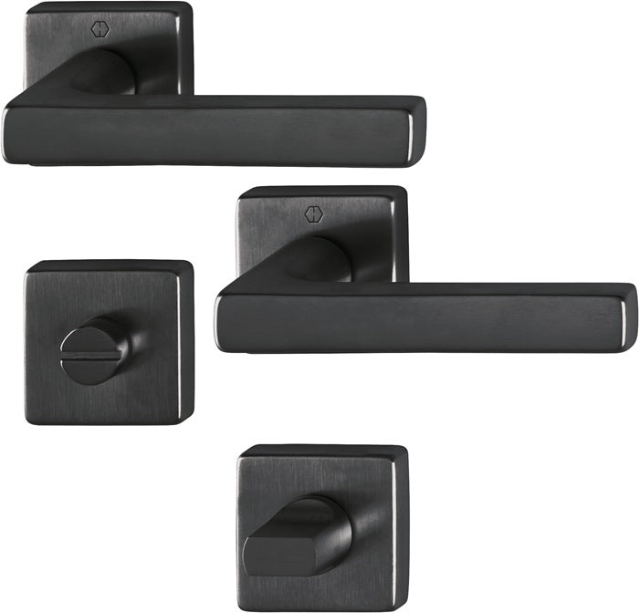 Mosiężny zestaw klamek z rozetami na klucz do drzwi wewnętrznych - testowany zgodnie z DIN EN 1906: 37-0140A (kategoria użytkowania 3) - łożyskowanie: klamki luźne - sprężyny powrotne mogą być używane prawo/lewo - bezobsługowe łożyska ślizgowe - połączenie: szybki trzpień HOPPE z pełnym trzpieniem HOPPE (część perforowana/otworowa) - konstrukcja nośna: tworzywo sztuczne, krzywki nośne - mocowanie: ukryte, ciągłe, naprzemienne, śruby uniwersalne
