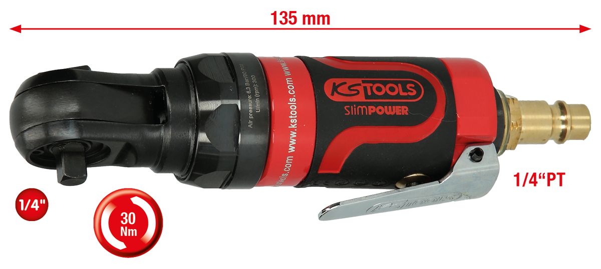 KS TOOLS 1/4" SlimPOWER Mini-Druckluft-Umschaltratsche 30Nm ( 515.5505 )