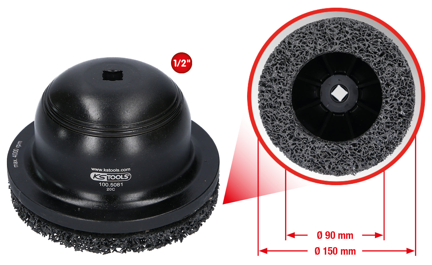 KS TOOLS Aluminium-Radnabenschleifer-Satz Ø 150 mm, Innen-Ø 90 mm, 2-tlg ( 100.5080 )