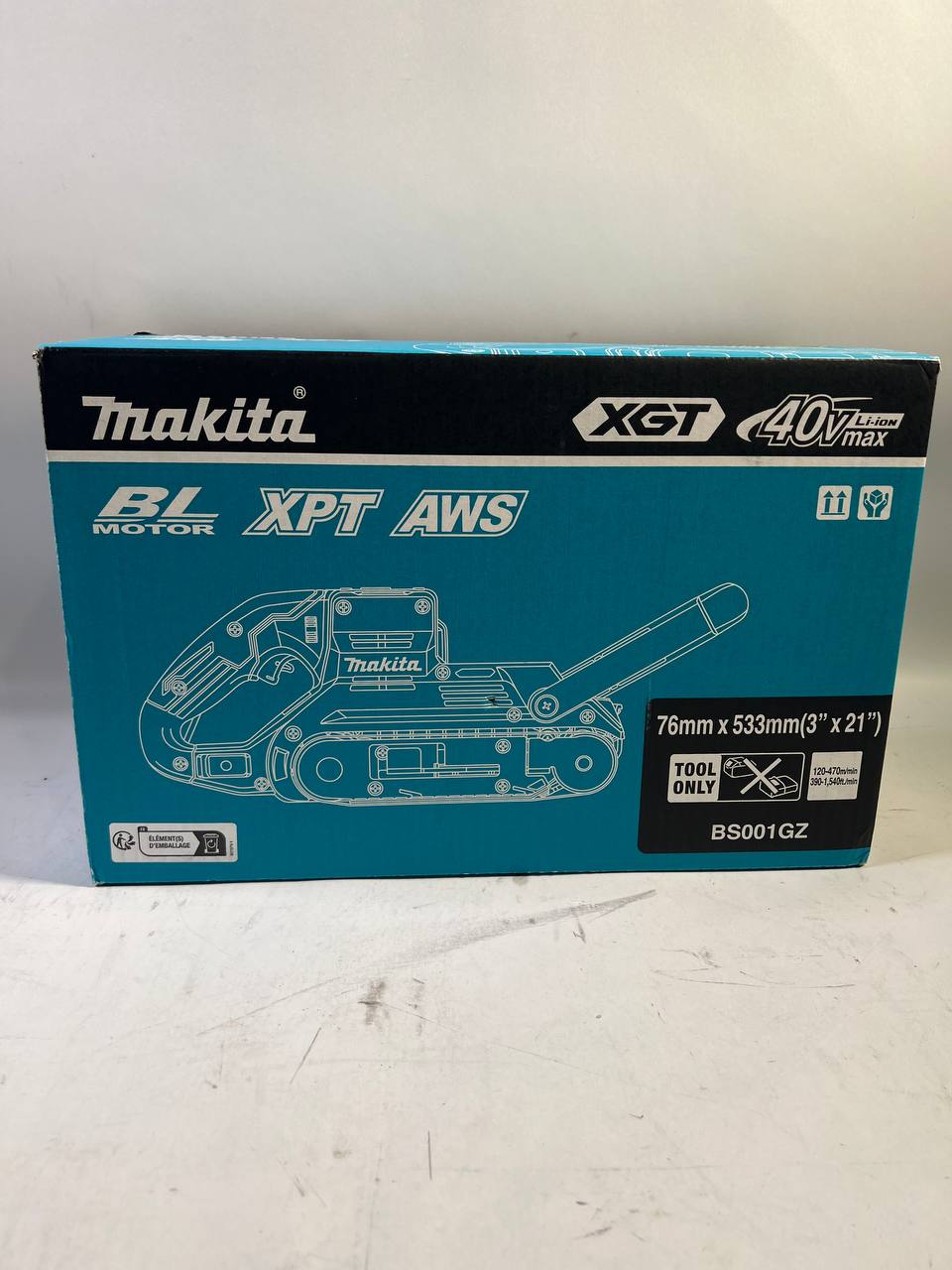 Makita BS 001 GZ Akku Bandschleifer 40 V max. 76 x 533 mm Brushless Solo - ohne Akku, ohne Ladegerät - Leicht Gebraucht
