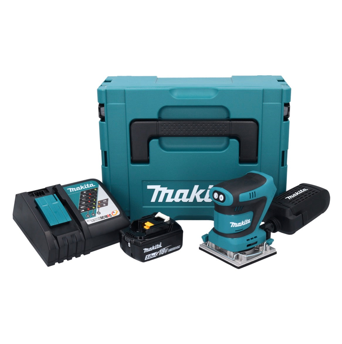 Makita DBO 482 RT1J Akumulatorowa szlifierka oscylacyjna 18 V 112 x 102 mm + 1x akumulator 5,0 Ah + ładowarka + Makpac