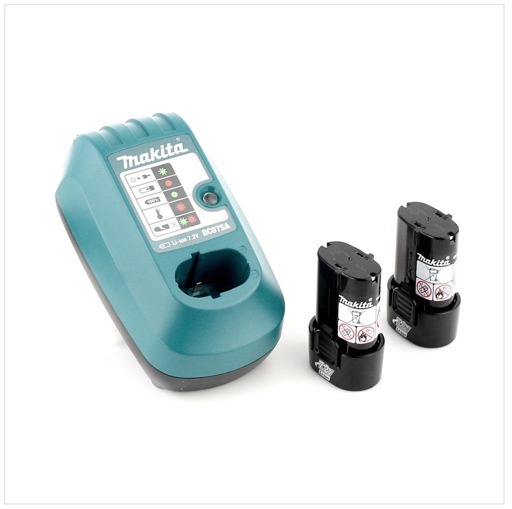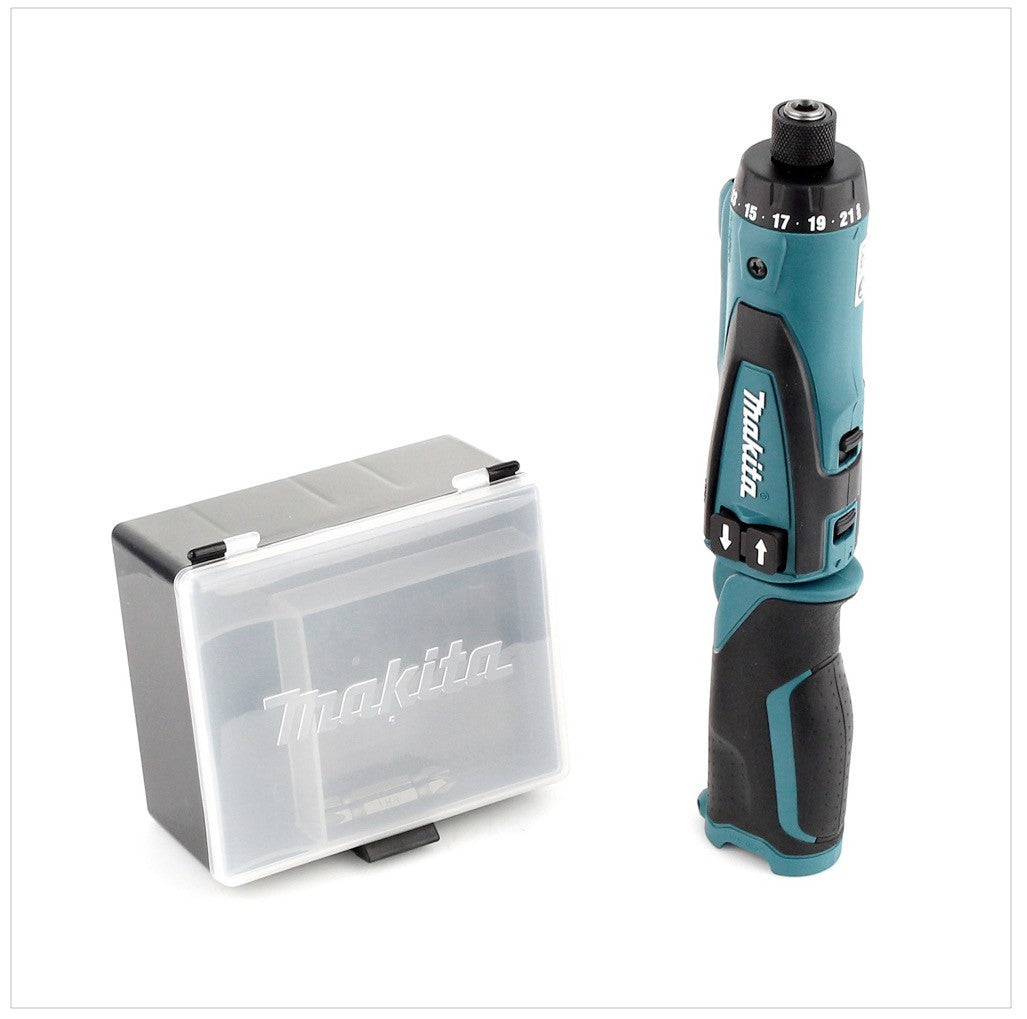 Makita DF 010 DSE 7,2 V Akku Knickschrauber im Koffer mit 2 Akkus 1 Ah, Ladegerät und Zubehör
