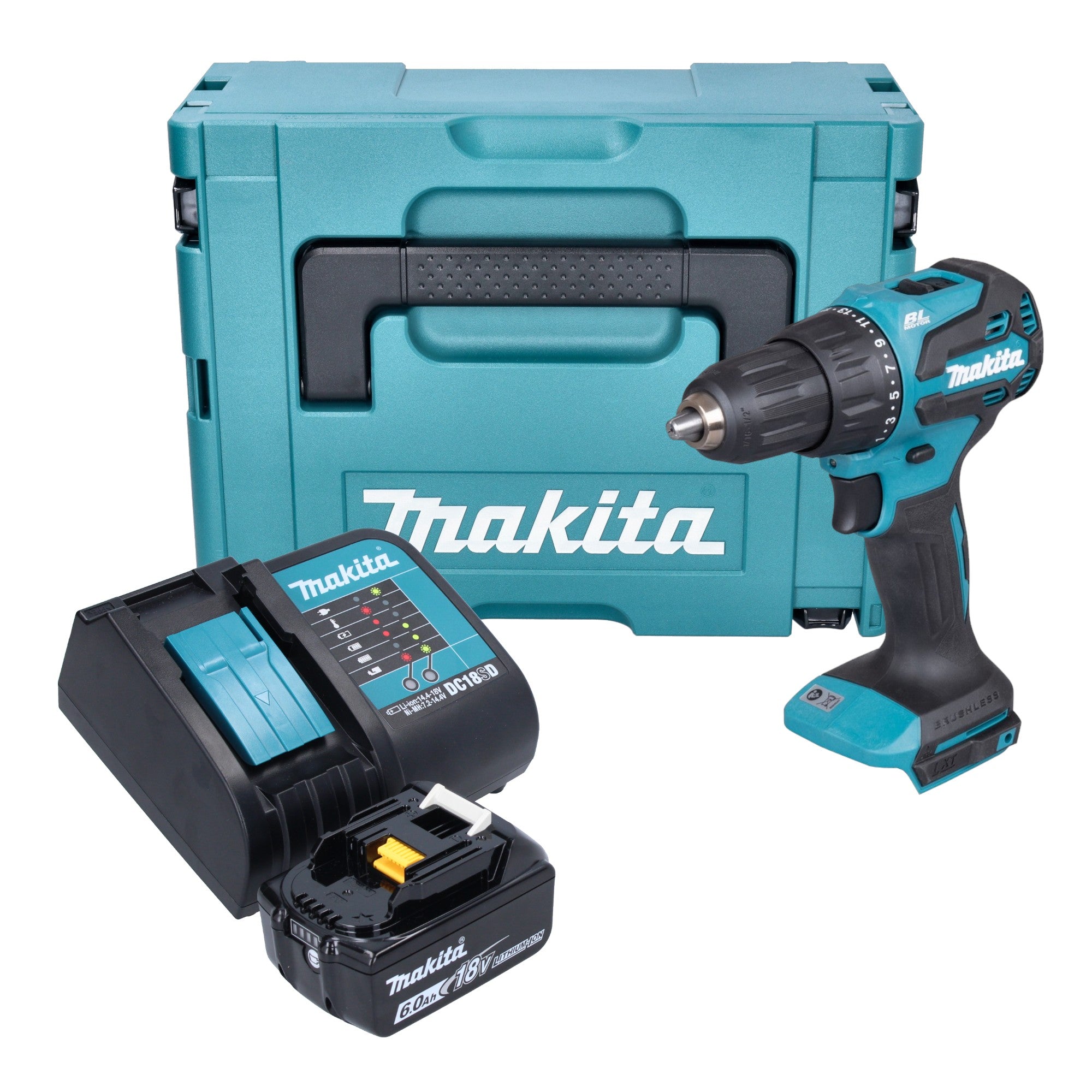 Makita DHP 490 SG1J akumulatorowa wiertarko-wkrętarka udarowa 18 V 65 Nm bezszczotkowa + 1x akumulator 6,0 Ah + ładowarka + Makpac