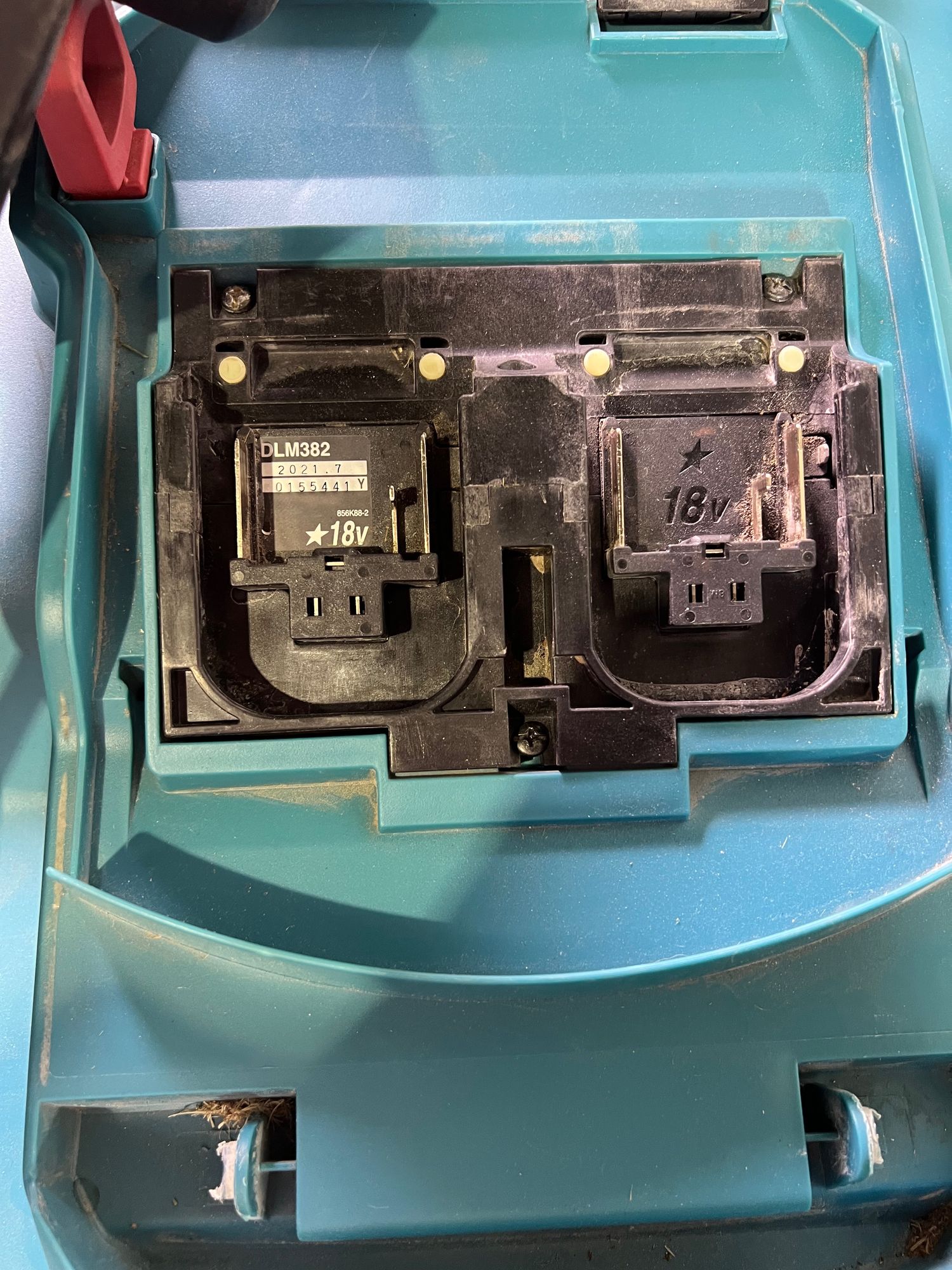 Makita DLM 382 PM2 Akku Rasenmäher 36 V ( 2x 18 V ) 38 cm 40 l + 2x Akku 4,0 Ah + Doppelladegerät - Reparaturgerät