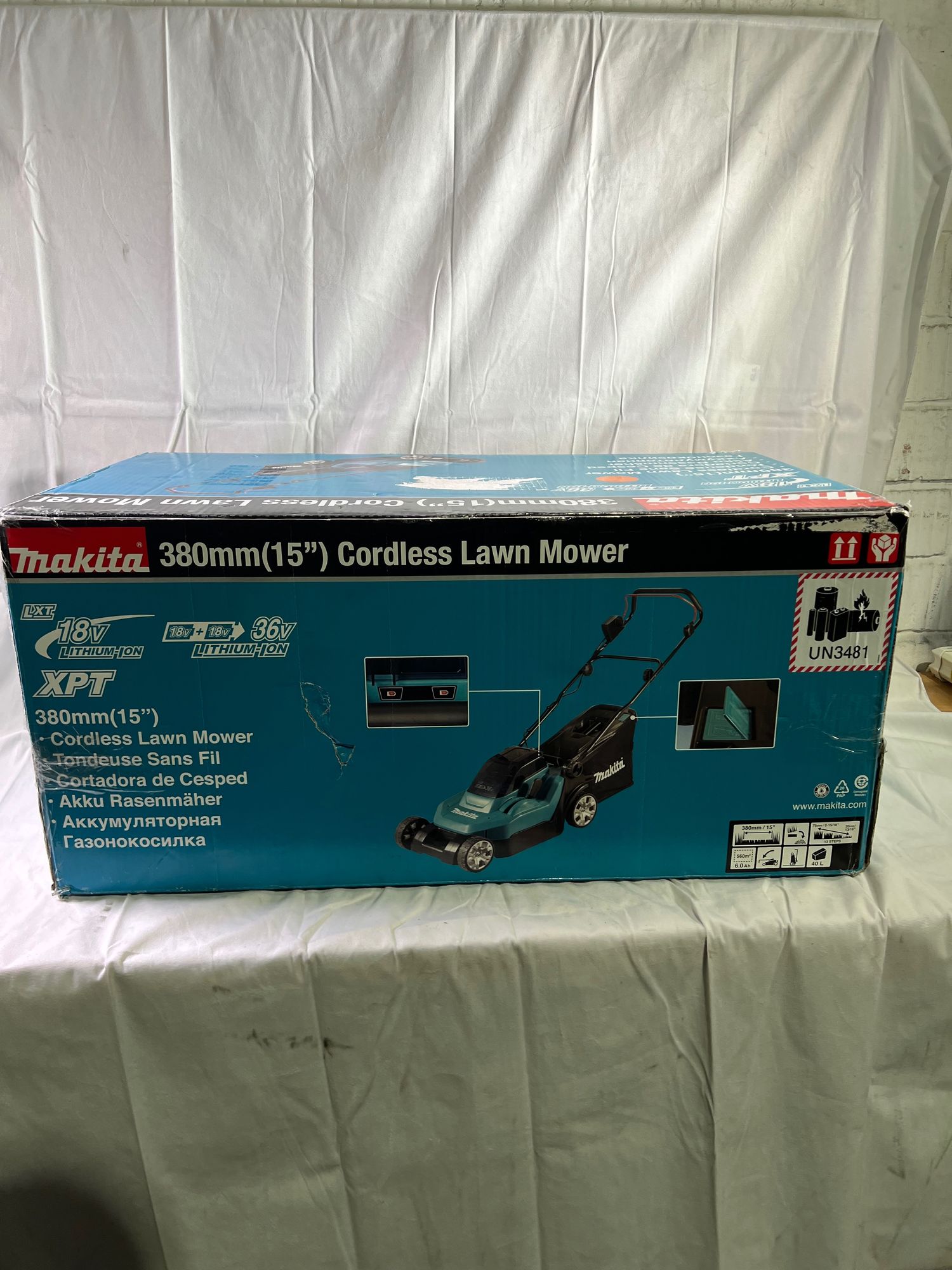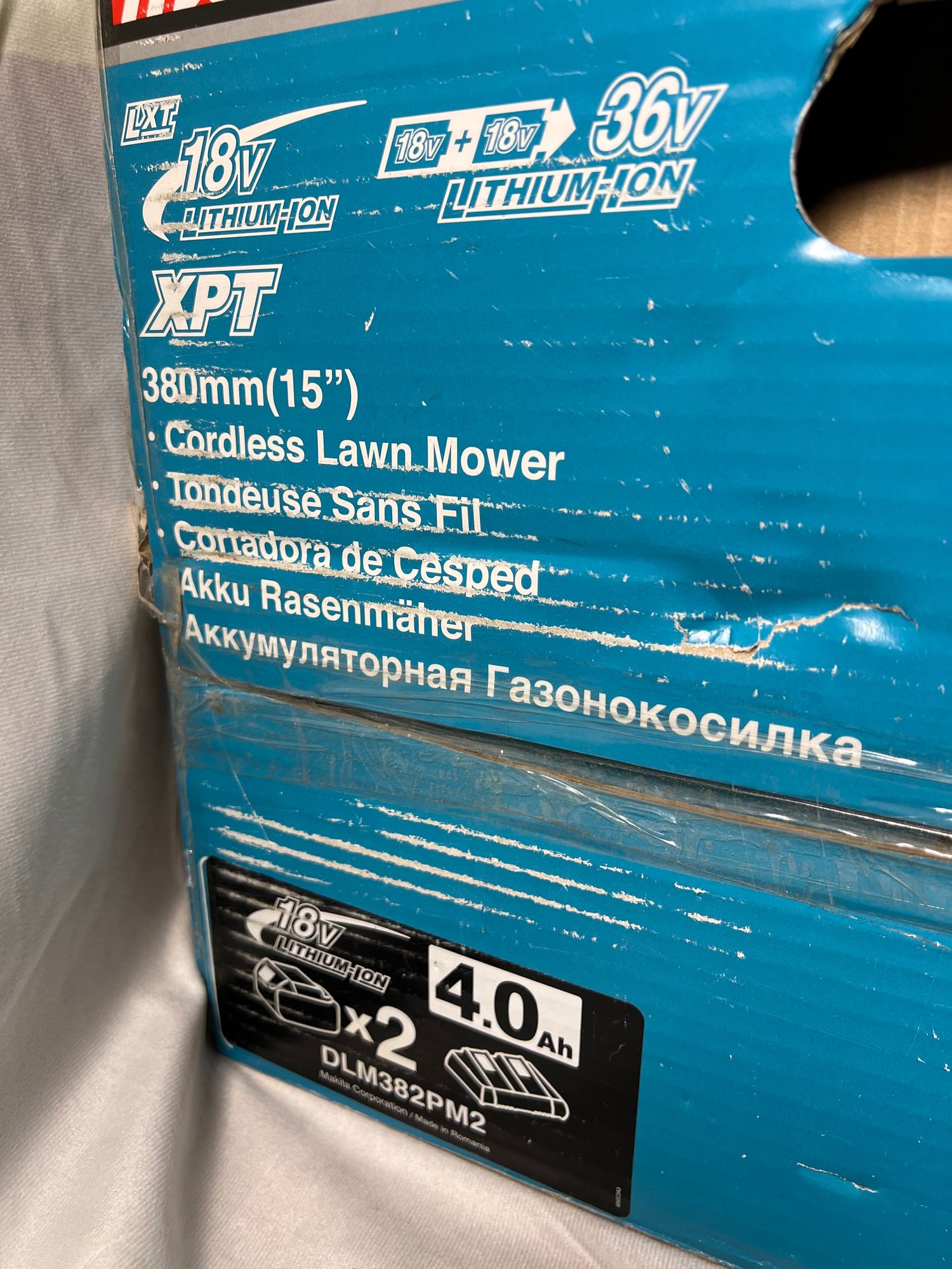 Makita DLM 382 Z Akku Rasenmäher 36 V ( 2x 18 V ) 38 cm 40 l Solo - ohne Akku, ohne Ladegerät - OVP Beschädigt