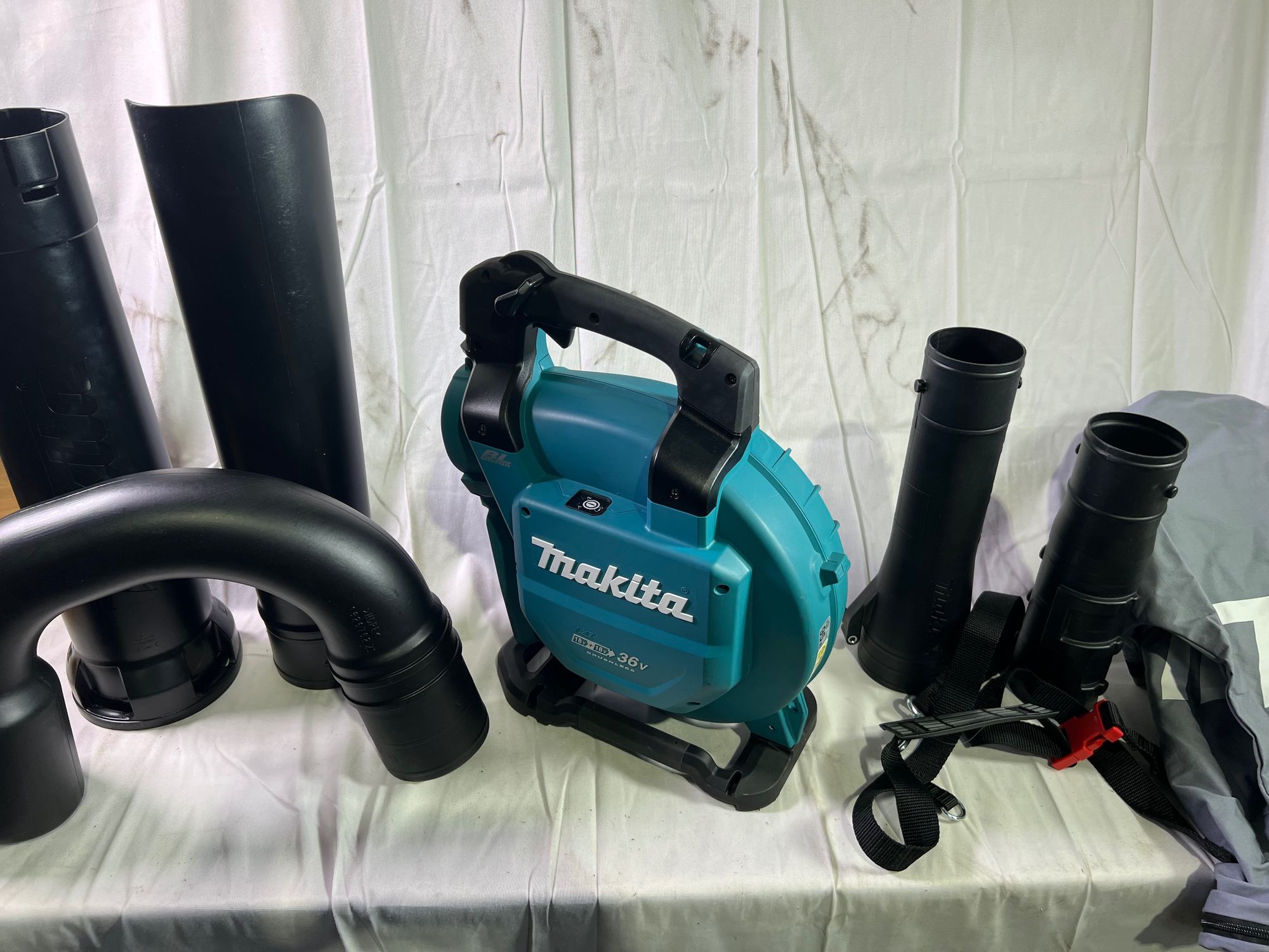 Der DUB 363 ist ein Laubgebläse, welches einfach in einen Laubsauger umgebaut werden kann und wird von zwei 18 V Akkus angetrieben. Die Maschine eignet sich mit seiner Luftgeschwindigkeit von bis zu 65 m/s und seinem Luftvolumen von 13,4 m³/min ideal für mittelgroße Flächen. Der eingebaute bürstenlose Motor ist sofort einsatzbereit, arbeitet abgasfrei, sehr geräuscharm, ist nahezu wartungsfrei und ermöglicht eine kompaktere Bauweise. Die Xtreme Protection Technology (XPT) von Makita bildet einen Schutz gegen Staub und Spritzwasser und ermöglicht den Betrieb selbst bei Herbstwetter oder in staubigen Gebieten. In der Maschine ist ein Schaufelrad integriert, welches das eingesaugte Laub zerkleinert und das Volumen somit erheblich vermindert und den natürlichen Zerfall des Laubes fördert. Die DUB 363 ist mit einem feinfühligen Gashebel ausgestattet, womit die Geschwindigkeit variabel eingestellt werden kann, um somit die Akku-Laufzeit optimal auszunutzen. Für einen Dauereinsatz ist eine Arretierung auf Dauerbetrieb möglich. Wie eingangs erwähnt, ist der Umbau vom Laubbläser zum Laubsauger schnell und umkompliziert möglich. Mit einer Schraube ist die Abdeckung vor dem Schaufelrad gelöst und das Saugrohr befestigt. Das U-Rohr wird an den Hauptanschluss angeschlossen und an dessen Ende der Auffangsack befestigt. Der erforderliche Sechskantschlüssel zum Lösen und Festziehen der Schraube ist praktischerweise direkt an der Maschine befestigt und somit immer griffbereit. Der mitgelieferte Schultergurt sorgt für eine angenehme und gesundheitsschonende Anwendung, aber auch für einen einfachen Transport vor oder nach dem Einsatz. Das Laub lässt sich per Reißverschluss ganz einfach aus dem Auffangsack entfernen. Makita ist ein führender Elektrowerkzeughersteller, der sich durch Qualität, Tradition und das weltweit größte Öko System auszeichnet.