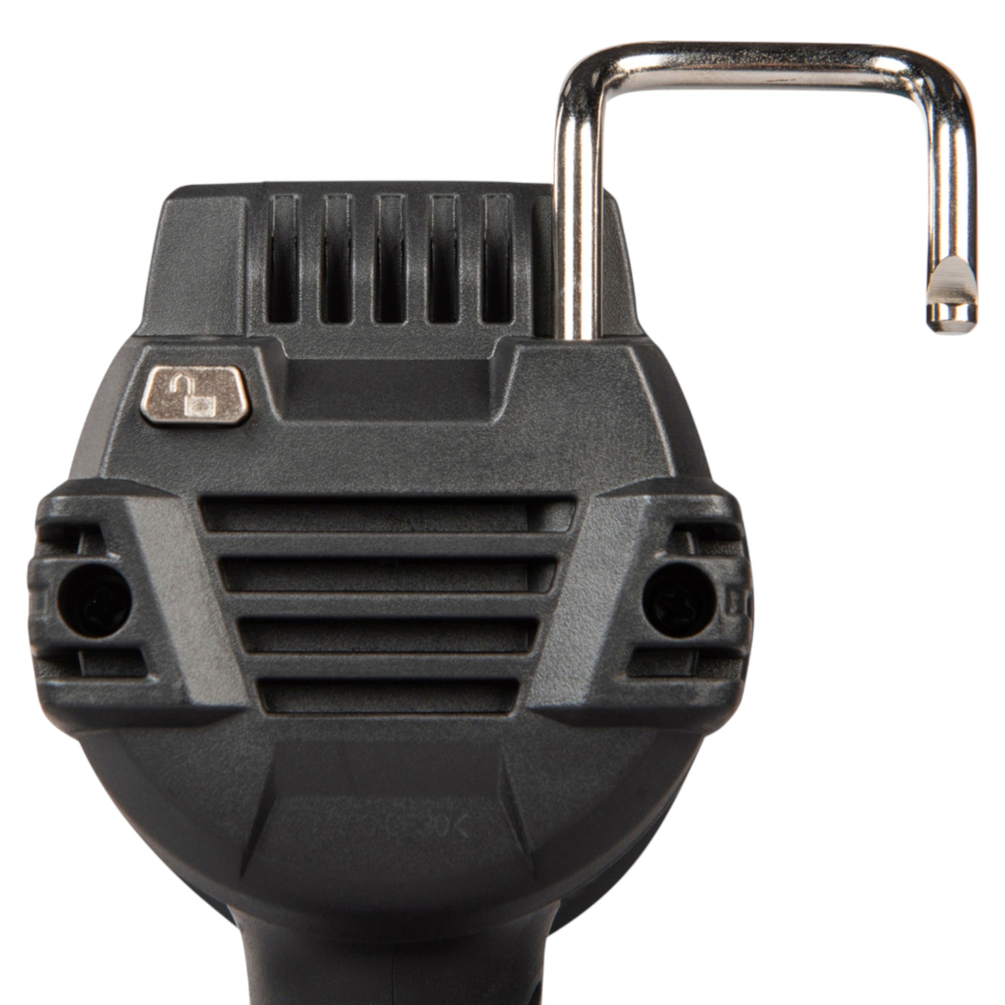 Das Makita HG 001 G Akku Heißluftgebläse bietet vielseitige Einsatzmöglichkeiten für Handwerker und Heimwerker und überzeugt durch eine stufenlos einstellbare Temperaturregelung, die sich bequem über Tasten an der Maschinenoberseite steuern lässt und bei Bedarf auch vollständig deaktiviert werden kann. Die vierstufig einstellbare Luftfördermenge ermöglicht eine präzise Anpassung an unterschiedliche Materialien und Anwendungen. Dank des Schnellwechselsystems lassen sich Düsen schnell und unkompliziert austauschen, während die Arretierfunktion für den Dauerbetrieb ein komfortables Arbeiten über längere Zeiträume ermöglicht. Eine leistungsstarke LED mit Vor- und Nachglimmfunktion sorgt zudem für optimale Sicht auch in dunkleren Arbeitsumgebungen.