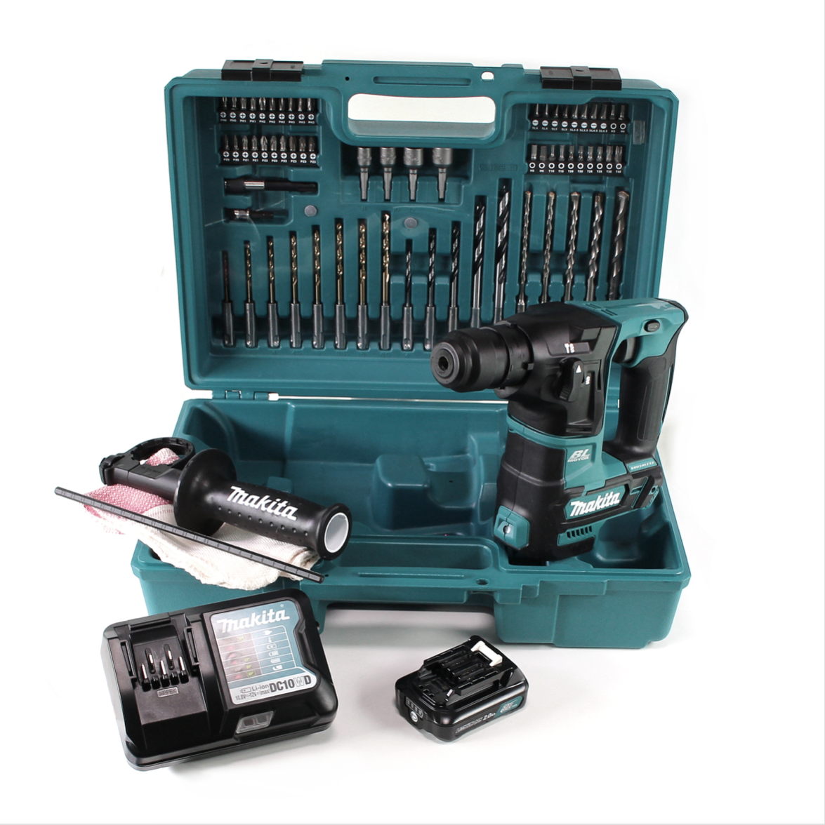 Der 10,8 Volt Akku betriebene Bohrhammer HR 166 D von Makita überzeugt mit hoher Leistung von 1,10 Joule Einschlagenergie trotz kompakter und leichter Bauweise. Der bürstenfreie Brushless Motor gewährleistet ein nahezu verschleißfreies Arbeiten und damit eine hohe Lebenserwartung des Gerätes. Der Bohrhammer lässt sich über einen mechanischen Drehschalter in 2 Stufen einstellen und ermöglicht somit einen schnellen und einfachen Wechsel zwischen Bohren ohne Schlag und Schlagbohren. Die 16 mm / 5/8" SDS-Plus Aufnahme erleichtert den werkzeuglosen Zubehörwechsel und führt zu einem individuellen Einsatz des Gerätes, ebenso wie die feinfühlig einstellbare Geschwindigkeitsregulierung. Der Bohrhammer ist zudem mit einer Elektronikbremse und einer konstanten Geschwindigkeitselektronik ausgestattet, sowie einer Vor- und Rückwärtsrotation des Bohrkopfes eignet sich die Maschine optimal für jede Anwendung auf der Baustelle und für Hobby Heimwerker.