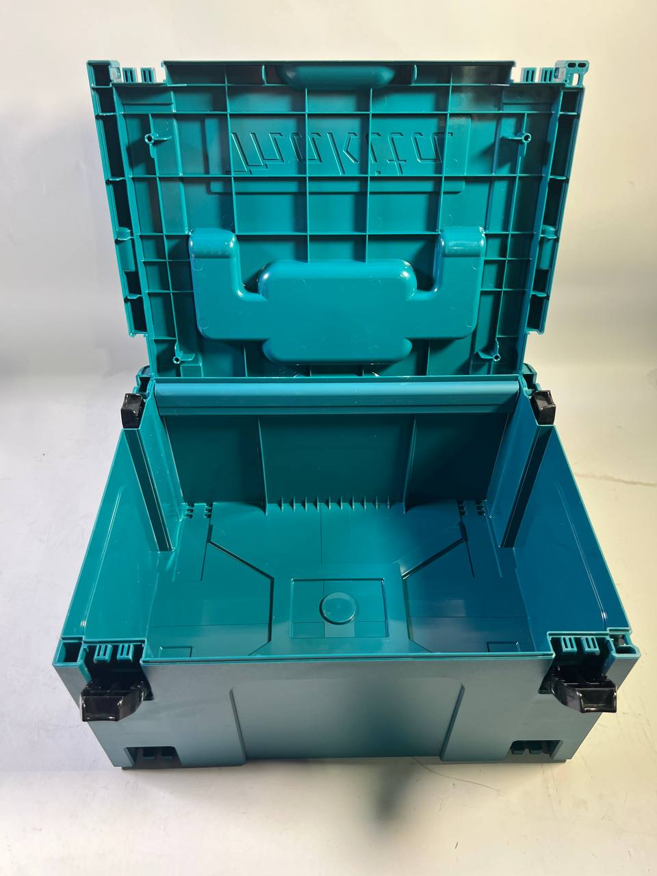 Der Makita MAKPAC 3 Kunstoffkoffer ist sehr robust und hat die Möglichkeit durch eine Einlage ergänzt zu werden (Einlage nicht im Lieferumfang enthalten). Er ist mit zwei Schnappverschlüssen und mit einem Tragegriff ausgestattet. Des weiteren sind alle MAKPAC Koffer und MAKPAC Organizer untereinander stapelbar und lassen sich mit den Schnappverschlüssen miteinander verbinden, um für Stabilität beim Transport zu sorgen.