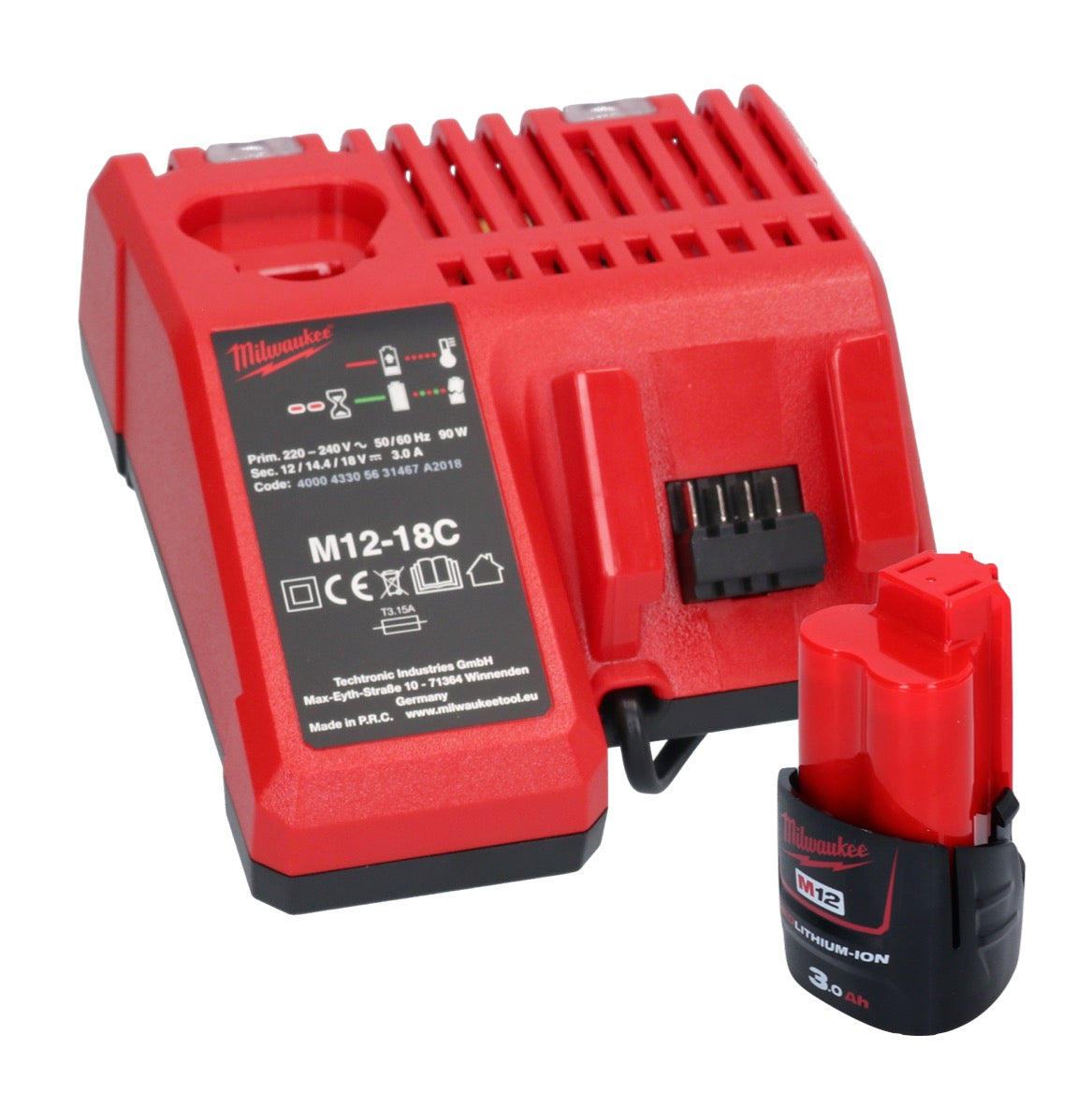 Milwaukee M12 GG-301C Akku Fettpresse 12 V 562 bar + 1x Akku 3,0 Ah + Ladegerät