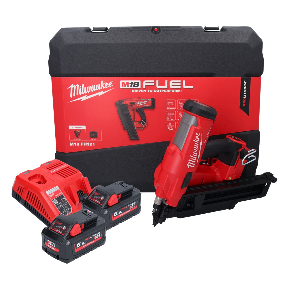 Milwaukee M18 FFN21-552C Gwoździarka akumulatorowa 18 V 50 - 90 mm bezszczotkowa + 2x akumulator 5,5 Ah + ładowarka + walizka