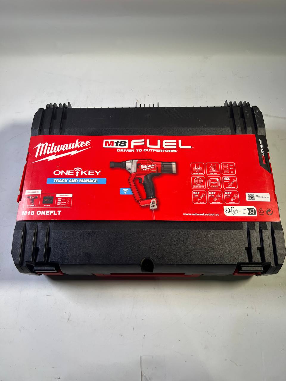 Das Milwaukee M18 ONEFLT Akku Schließringbolzensetzgerät vereint die fortschrittliche M18 FUEL™ Technologie mit der praktischen ONE-KEY™ Funktionalität, um eine leistungsstarke und effiziente Lösung für schnelle und einfache Installationen zu bieten. Mit einer beeindruckenden Setzkraft von 20.000 N und einer Hublänge von 30 mm ermöglicht dieses Werkzeug das mühelose Setzen von bis zu 1.200 Aluminium 6,4 mm Schließringbolzen mit einem einzigen M18™ 5,0 Ah Akkupack. Es ist speziell für die Montage einer breiten Palette von HUCK® Befestigungselementen konzipiert, darunter 4,8 mm und 6,4 mm Bobtail® Magna-Grip®, C6L®, C120L® und Hucktainer®, wobei alle entsprechenden HUCK® Nasen und Adapter separat erhältlich sind. Darüber hinaus bietet die ONE-KEY™ Technologie fortschrittliches Tool-Tracking und Security-Funktionen durch eine kostenlose cloudbasierte Plattform, die es ermöglicht, Werkzeuge zu verfolgen und zu verwalten sowie sie aus der Ferne zu sperren, um Diebstahl oder unbefugte Nutzung zu verhindern. Dieses Schließringbolzensetzgerät baut auf der leistungsstarken MX FUEL™ Plattform auf und bietet eine Alternative zu herkömmlichen Benzin- oder Druckluftwerkzeugen, indem es Aufgaben übernimmt, die bisher nur unter großem Aufwand möglich waren. Es reduziert die Belastung durch Emissionen, Lärm und Vibrationen und macht die Arbeit sicherer, leiser und effizienter. Zudem ist es 100 % kompatibel mit dem MILWAUKEE®-M18™-Produktprogramm.