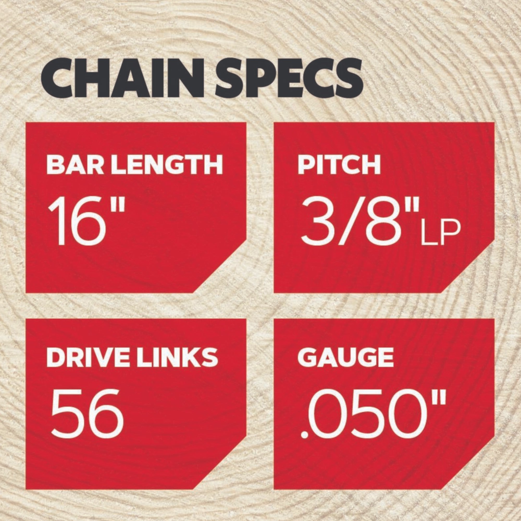 Wysokowydajna piła łańcuchowa Oregon 91VXL 3/8" Low Profile™ to idealny wybór dla arborystów i sadowników, którzy potrzebują mocnej, ale lekkiej piły łańcuchowej. Zaprojektowana z myślą o profesjonalnych zastosowaniach piła łańcuchowa oferuje wydłużoną żywotność dzięki długim górnym krawędziom tnącym, umożliwiając bardziej wydajną i precyzyjną pracę. Dzięki podziałce 3/8" Low Profile™ i grubości 1,3 mm (.050"), łańcuch 91VXL zapewnia doskonałą wydajność cięcia przy mniejszym odbiciu, co czyni go bezpiecznym wyborem do zastosowań profesjonalnych. Łańcuch posiada 56 ogniw napędowych i jest odpowiedni do pilarek o pojemności do 42 cm³. Dzięki technologii LubriTec™ łańcuch i prowadnica są stale smarowane, co minimalizuje tarcie i wydłuża żywotność narzędzia. Łańcuch oferuje również doskonałą odporność na korozję dzięki niebieskim ostrzom, które zapewniają wysokiej jakości ochronę przed zużyciem i wpływem warunków atmosferycznych.