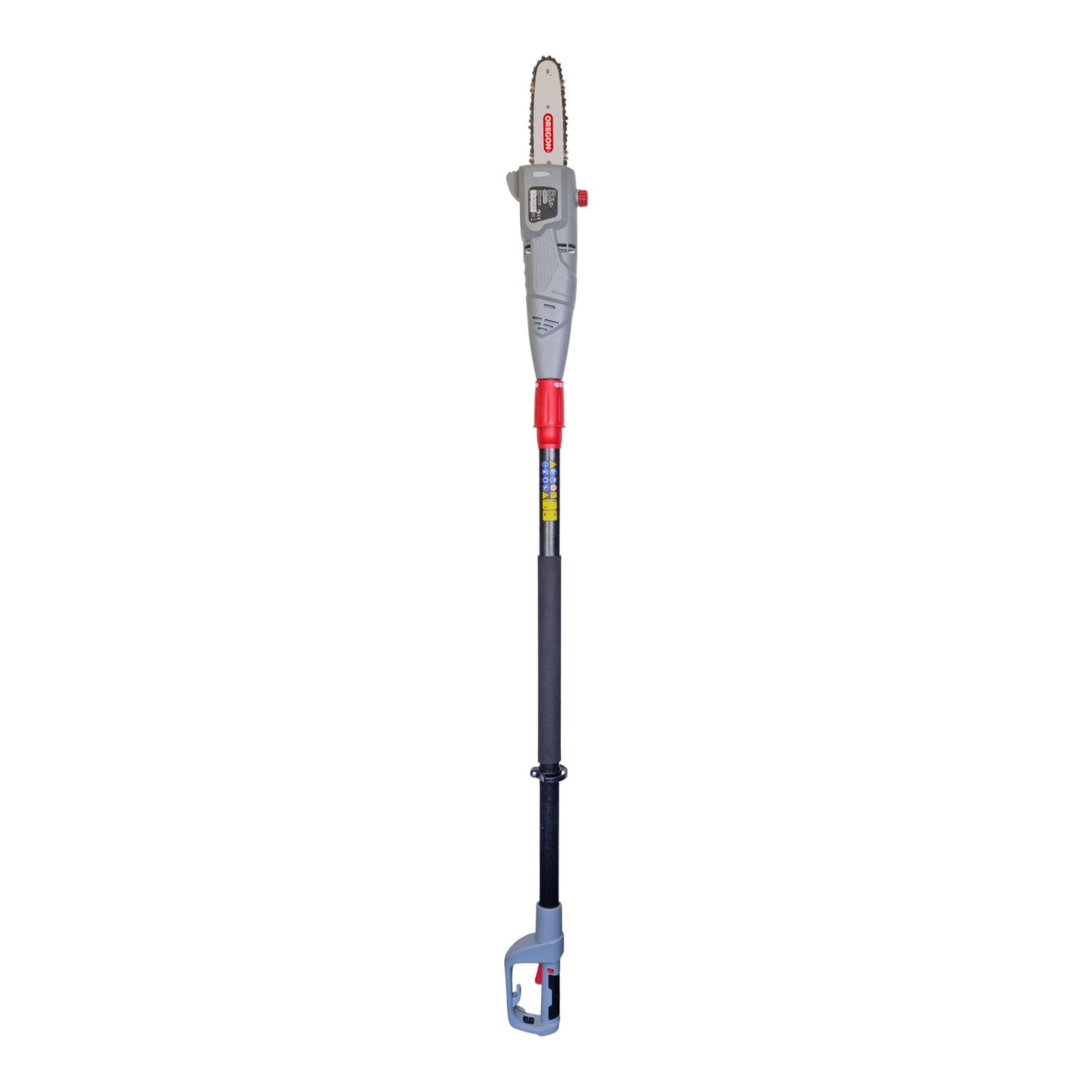 Teleskopowy sekator PS750 firmy Oregon o mocy 750 W i napięciu 230 V sprawia, że przycinanie wysokich gałęzi jest wyjątkowo łatwe i wygodne. Dzięki dużemu zasięgowi urządzenie idealnie nadaje się do pracy na drzewach o różnych rozmiarach. Nawet gałęzie o średnicy do 20 centymetrów mogą być cięte bez wysiłku. Podkrzesywarka jest również idealna do szerokiej gamy zadań ogrodniczych, takich jak szybkie przycinanie żywopłotów. Narzędzie jest wyposażone w system natychmiastowego uruchamiania i brzeszczot o długości 20 cm (8″), który umożliwia czyste i precyzyjne cięcie. Praktyczny pasek na ramię zapewnia dodatkowy komfort i znacznie ułatwia pracę. Ergonomicznie ukształtowany uchwyt teleskopowy jest łatwy w obsłudze i można go wydłużyć do 2,85 metra, co daje zasięg około 4 metrów nad ziemią. Kolejną zaletą jest beznarzędziowy system napinania: łańcuch można szybko i łatwo napiąć, obracając praktyczne pokrętło. PS750 łączy w sobie wysoką wydajność, łatwość obsługi i efektywność - idealnie nadaje się do regularnej pielęgnacji ogrodu.