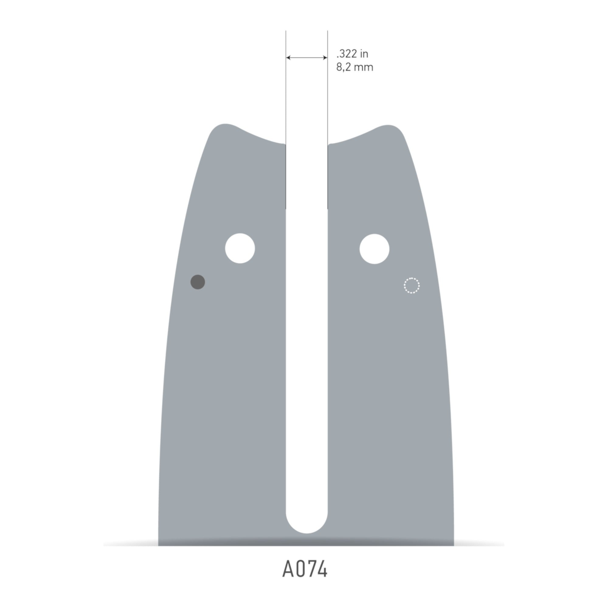 Połączenie prowadnicy 14" i niskoprofilowego łańcucha 3/8" zostało zaprojektowane specjalnie dla profesjonalnych arborystów, którzy potrzebują mocnego łańcucha o minimalnych wibracjach i niskim odbiciu. Dzięki podziałce 3/8" Low Profile™ i rzazowi 1,3 mm (.050"), łańcuch ten zapewnia precyzyjne cięcie i wysoką wydajność. Łańcuch ma 74 ogniwa napędowe i jest wyjątkowo trwały dzięki technologii LubriTec™, która stale smaruje łańcuch i prowadnicę w celu zmniejszenia tarcia.