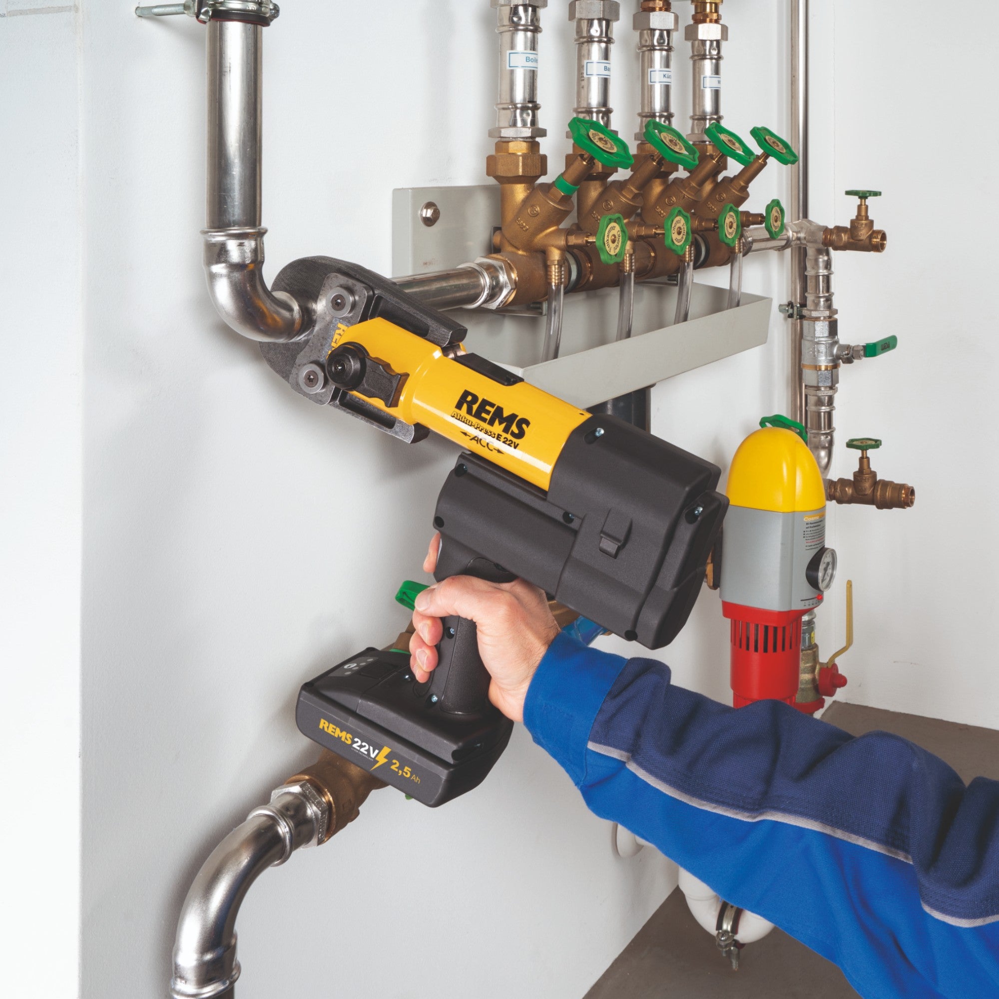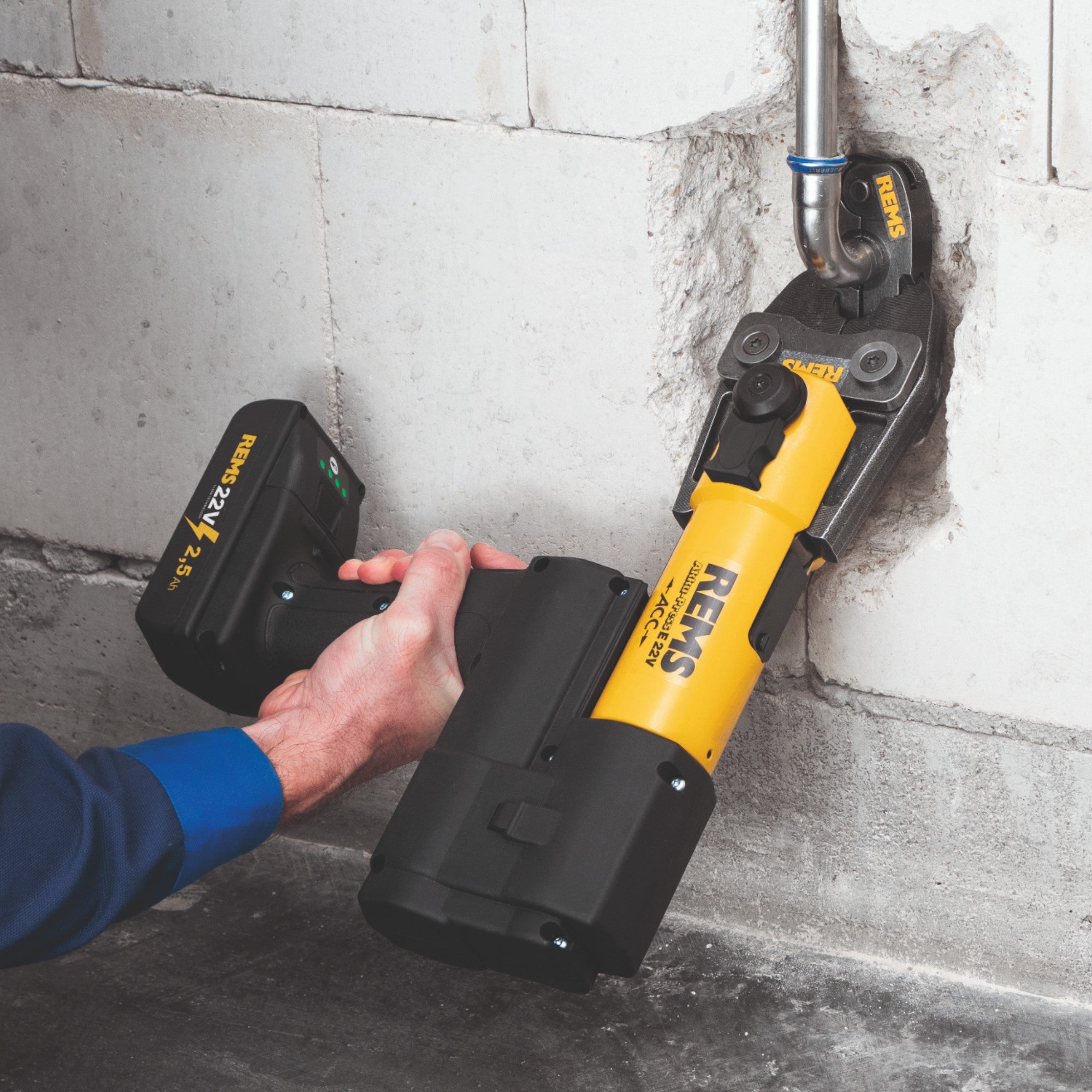- 1x akumulatorowa prasa promieniowa Rems E 22V ACC Basic-Pack