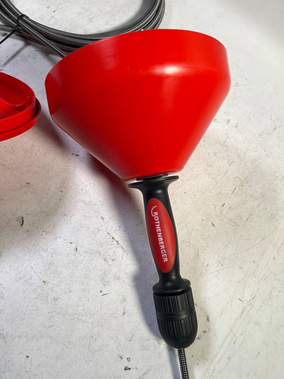 Ręczna myjka do rur Rothenberger ROSPI H+E Plus oferuje szybkie i skuteczne rozwiązanie do usuwania zatorów w rurach łączących umywalki, zlewy, brodziki i wanny. Nadaje się do rur o średnicy od 20 do 50 mm (3/4-2 cale) i zasięgu do 7,5 metra. Przełączenie z trybu ręcznego na elektryczny zajmuje zaledwie kilka sekund, zapewniając maksymalną elastyczność. W trybie elektrycznym narzędzie zapewnia pewny chwyt nawet przy wyższych prędkościach. Blokada spiralna z elastyczną spiralą i zintegrowaną głowicą mopa umożliwia usuwanie brudu z trudno dostępnych miejsc. Odporny na uderzenia, bryzgoszczelny plastikowy pojemnik na spiralę zapewnia dodatkową wytrzymałość i ochronę przed zabrudzeniami. Dzięki sześciokątowi do mocowania w uchwycie wiertarskim, narzędzie można łatwo zintegrować z wiertarką, aby zapewnić jeszcze większą moc.