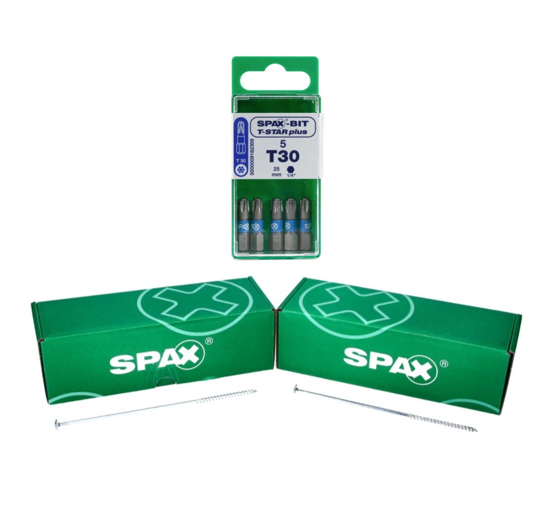 SPAX Set BIT T-STAR plus T30 - 6,4 x 25 mm, 5 Stk. ( 5000009182309 ) + HI.FORCE Tellerkopf Schraube 6,0 x 200 mm 50 Stk. ( 0251010602005 )