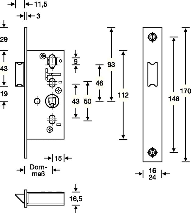 zgodny z DIN 18251-2 - stalowa obudowa zamka zamknięta od góry i od dołu - pochylony - czoło ze stali nierdzewnej - długość czoła 170 mm - kwadrat 8 mm - może być używany DIN lewy / prawy - zatrzask wykonany z odlewu cynkowego - bez blachy zaczepowej