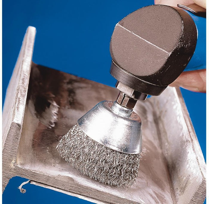 Uniwersalna do czyszczenia, odrdzewiania i wygładzania, a także usuwania korozji i farby - Nadaje się do szczotkowania dużych, płaskich i łatwo dostępnych powierzchni - Z korpusem szczotki pokrytym tworzywem sztucznym. Drut stalowy o wysokiej wytrzymałości na rozciąganie i zginanie - zapewnia optymalne zużycie drutu i długą żywotność, nawet w ekstremalnych zastosowaniach szczotkarskich Drut stalowy może wytrzymać temperatury do 300 °C. Trzpień Ø 6 mm