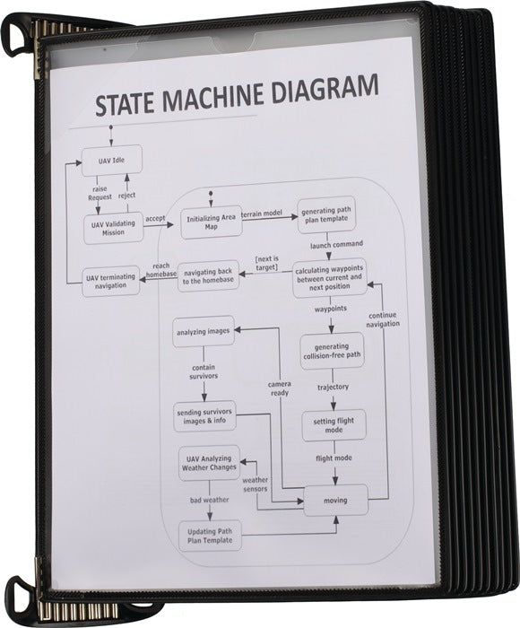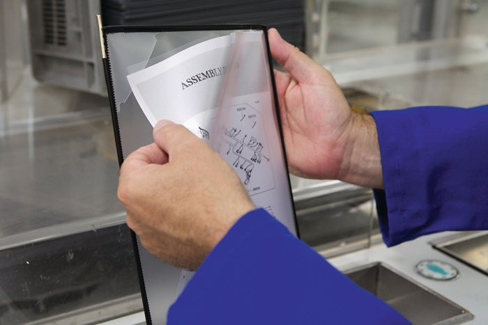 Komplett-Set · mit Aluminiumschiene · mit T-Clip zur Befestigung (ohne Werkzeug) der Aluminiumschiene an allen Aluprofilen mit 8er oder 10er Nut · Befestigung mit Schrauben (nicht im Lieferumfang enthalten) oder Magnetband · schnell einsatzbereit durch Neodym-Magnete, für ein schnelles austauschen der Tafeln · Sichttafeln PP mit kunststoffummanteltem Stahldraht · starke Metalldrehzapfen · mit Easy-Load Öffnungssystem, die fordere Folie wird unter einen Eckverschluss geschoben · für eine Aufnahme von bis zu 20 Blätter · mit 5 Sichttafeln bzw. 10 Sichttafeln schwarz